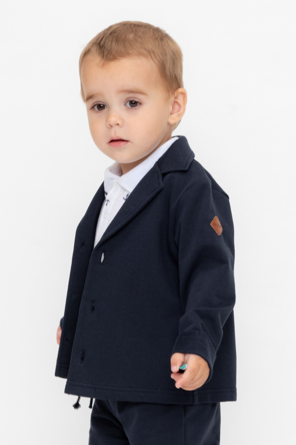 Пиджак для мальчика из высококачественного трикотажного полотна футер петля. Застёгивается на пуговицы. Изделие сохраняет цвет и форму после многократных стирок.