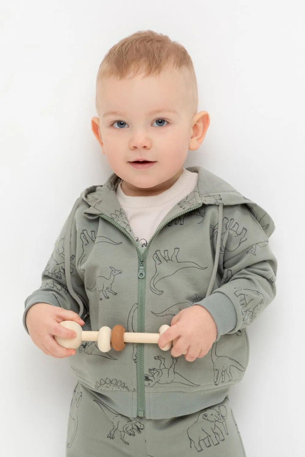 Трикотажная толстовка на молнии с капюшоном для мальчика. Изготовлена из мягкого набивного футера петли. Модель с боковыми карманами. Пояс и манжеты выполнены из эластичного трикотажа в рубчик.