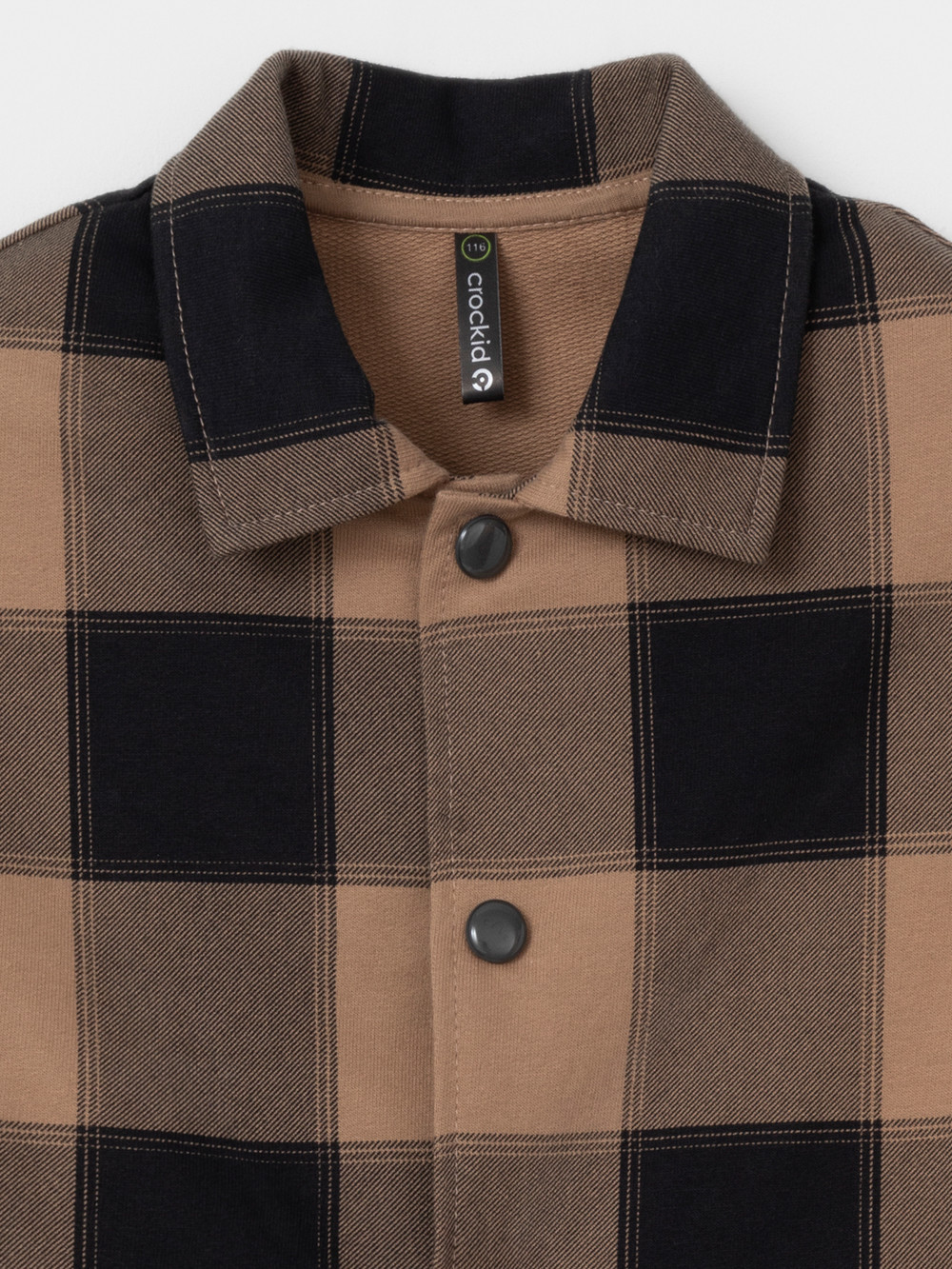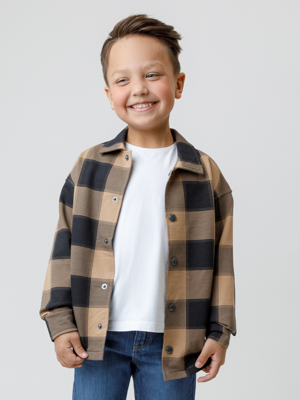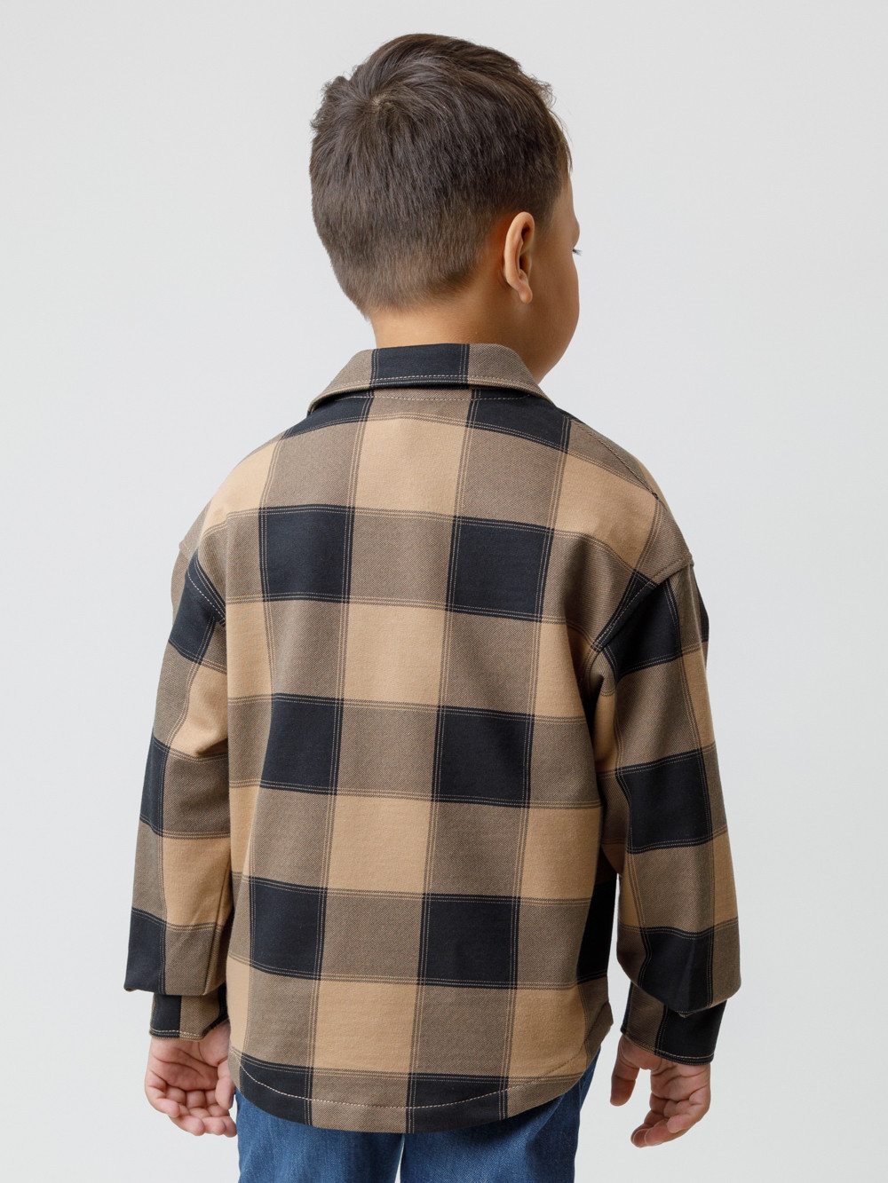 Свободная трикотажная рубашка для мальчика из мягкого петельчатого футера. Застёгивается на кнопки. Модель с закругленным низом и спущенным плечом. Рисунок в клетку выполнен из стойких текстильных гипоаллергенных красителей. Изделие сохраняет цвет и форму после многократных стирок. Все трикотажные полотна производятся в соответствии с нормами швейцарского сертификата ЭкоТекс.