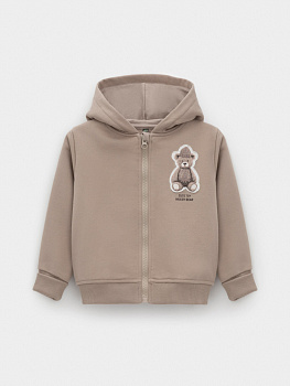 Куртка для мальчика с капюшоном на молнии. Изготовлена из мягкого петельчатого футера трёхнитки. В составе 80% натурального хлопка и 20% полиэстера, при этом полиэстер ввязан внутрь по особой технологии и не соприкасается с кожей. Воротник, манжеты и пояс выполнены из эластичного полотна. По бокам два кармана. Изделие сохраняет цвет и форму после многократных стирок. Все трикотажные полотна производятся в соответствии с нормами швейцарского сертификата ЭкоТекс.