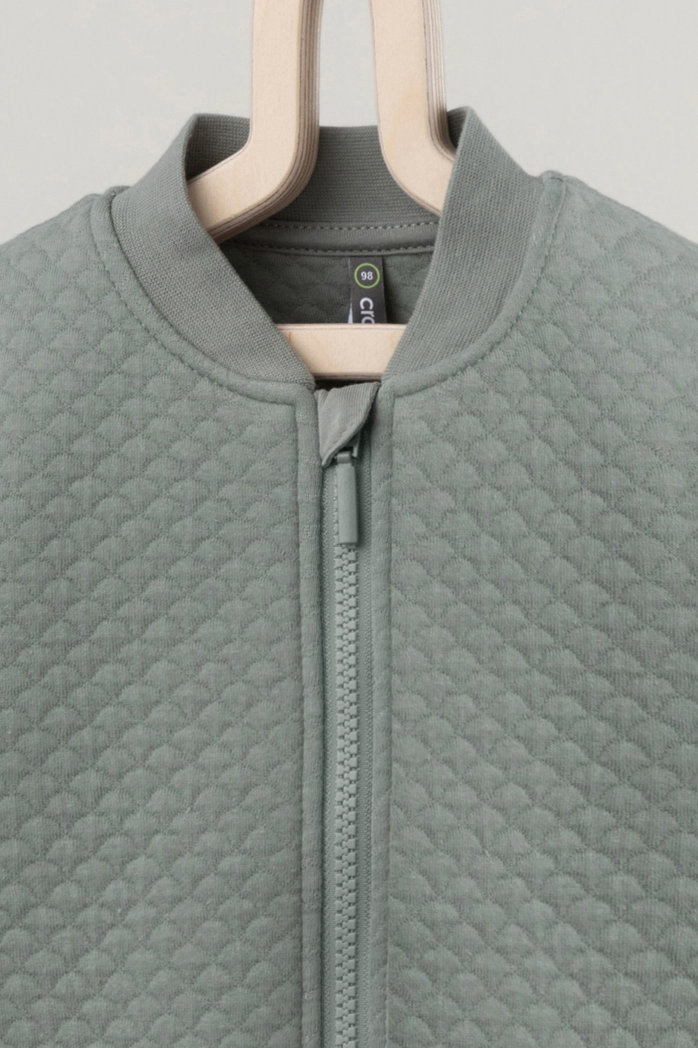 Тёплая куртка бомбер из капитония. Капитоний – это стёганое трикотажное полотно с утеплителем из полиэстеровой нити. Изделие застёгивается на молнию и имеет мягкие эластичные манжеты и пояс из рибаны. По бокам два удобных кармана. Все трикотажные полотна производятся в соответствии с нормами Швейцарского сертификата ЭкоТекс.