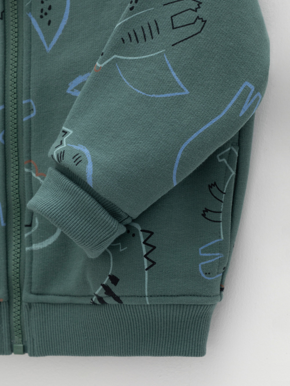 Бомбер для мальчика на молнии. Изготовлен из мягкого петельчатого футера трёхнитки. В составе 80% натурального хлопка и 20% полиэстера, при этом полиэстер ввязан внутрь по особой технологии и не соприкасается с кожей. Воротник, манжеты и пояс выполнены из эластичного полотна. По бокам два кармана. Изделие сохраняет цвет и форму после многократных стирок. Все трикотажные полотна производятся в соответствии с нормами швейцарского сертификата ЭкоТекс.