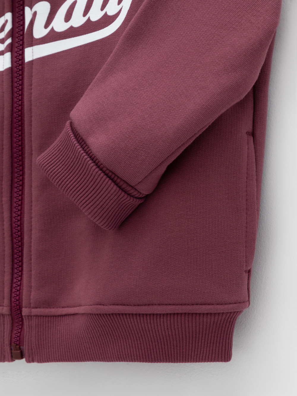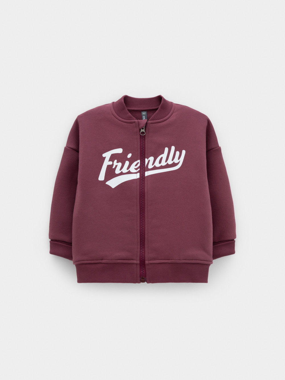Бомбер для мальчика на молнии. Изготовлен из мягкого петельчатого трикотажа. В составе 80% натурального хлопка и 20% полиэстера, при этом полиэстер ввязан внутрь по особой технологии и не соприкасается с кожей. Воротник, манжеты и пояс выполнены из эластичного полотна. По бокам два кармана. Изделие сохраняет цвет и форму после многократных стирок. Все трикотажные полотна производятся в соответствии с нормами швейцарского сертификата ЭкоТекс.