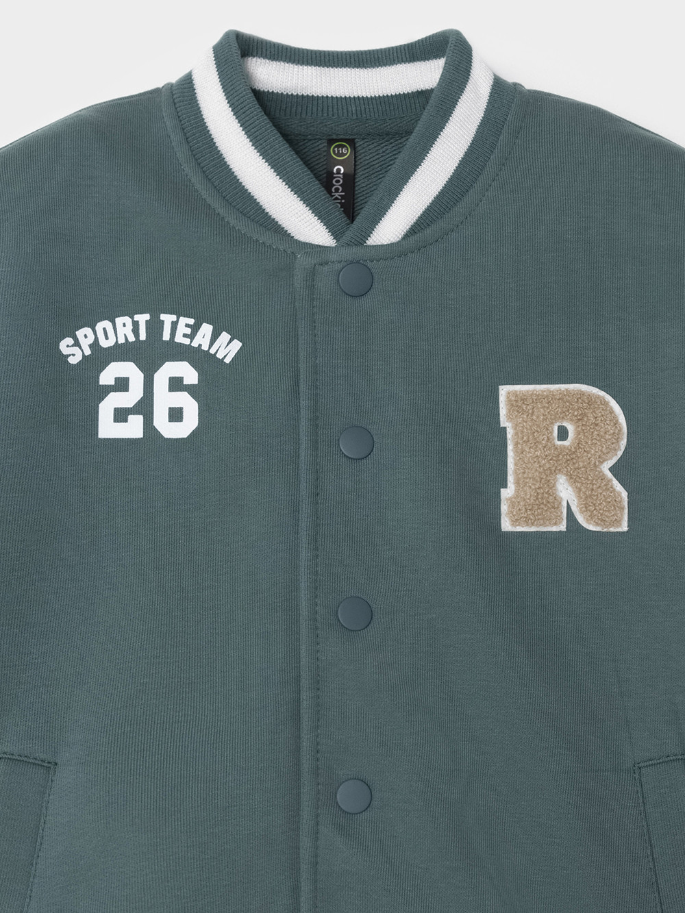 Бомбер для мальчика с контрастными рукавами из мягкого трикотажа. В составе 80% натурального хлопка и 20% полиэстера, при этом полиэстер ввязан внутрь по особой технологии и не соприкасается с кожей.  Застёгивается на кнопки. Воротник, манжеты и пояс вязаные. Спереди два кармана. Изделие сохраняет цвет и форму после многократных стирок. Все трикотажные полотна производятся в соответствии с нормами швейцарского сертификата ЭкоТекс.