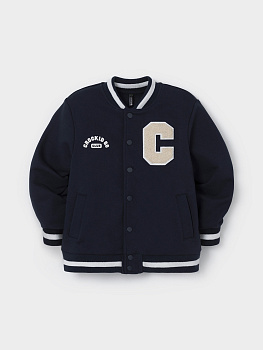 Бомбер для мальчика из мягкого трикотажа. В составе 80% натурального хлопка и 20% полиэстера, при этом полиэстер ввязан внутрь по особой технологии и не соприкасается с кожей.  Застёгивается на кнопки. Воротник, манжеты и пояс вязаные. Спереди два кармана. Изделие сохраняет цвет и форму после многократных стирок. Все трикотажные полотна производятся в соответствии с нормами швейцарского сертификата ЭкоТекс.