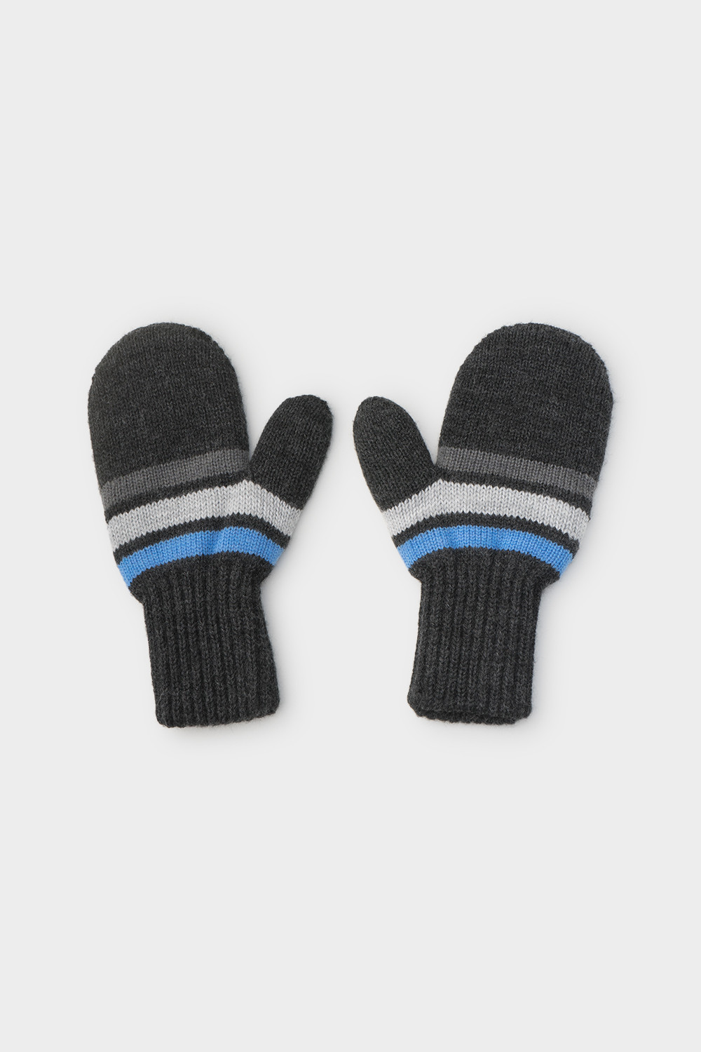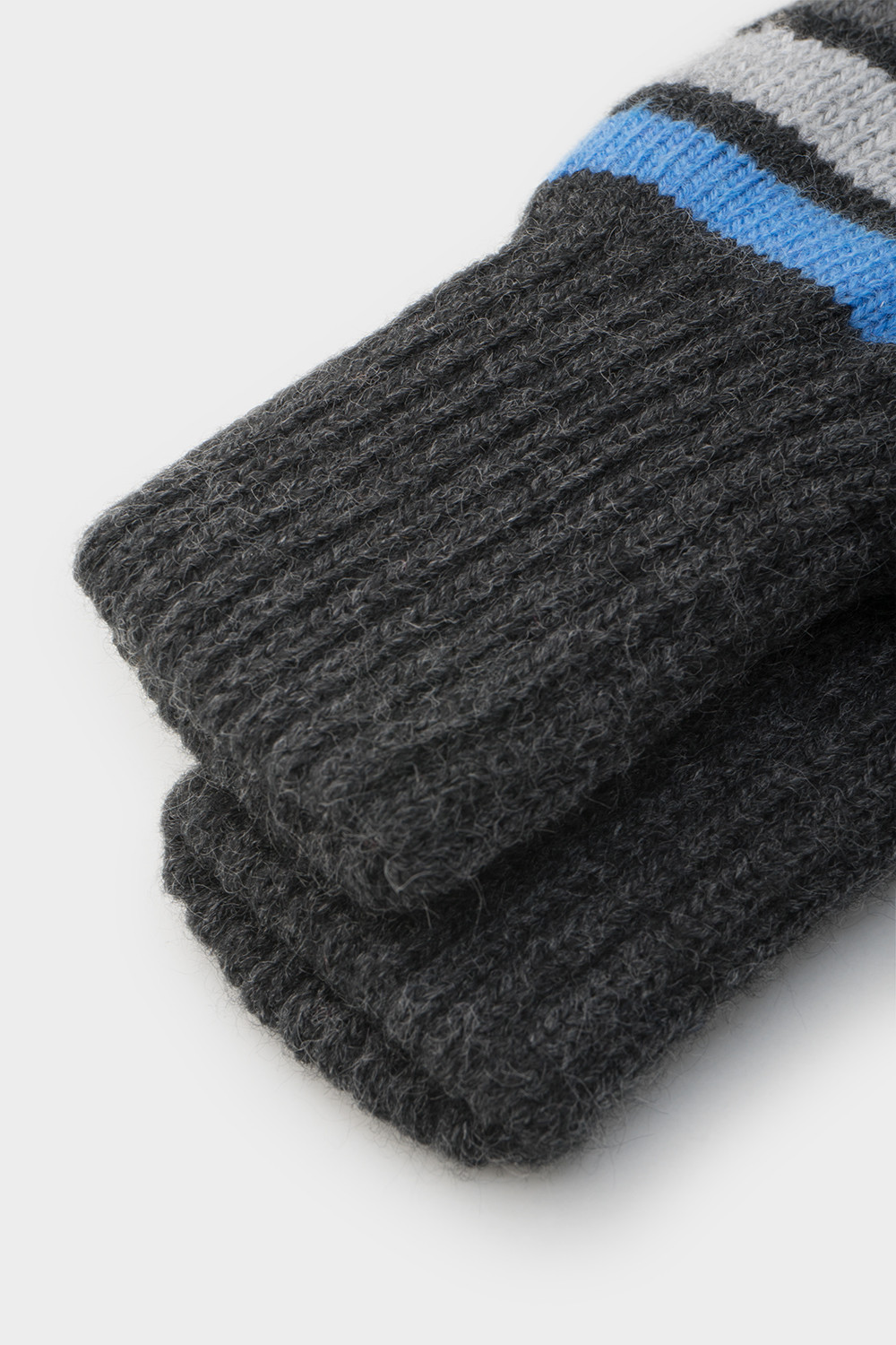 Полосатые варежки из полушерстяной пряжи. Эластичные манжеты фиксируют рукавицу на запястье.