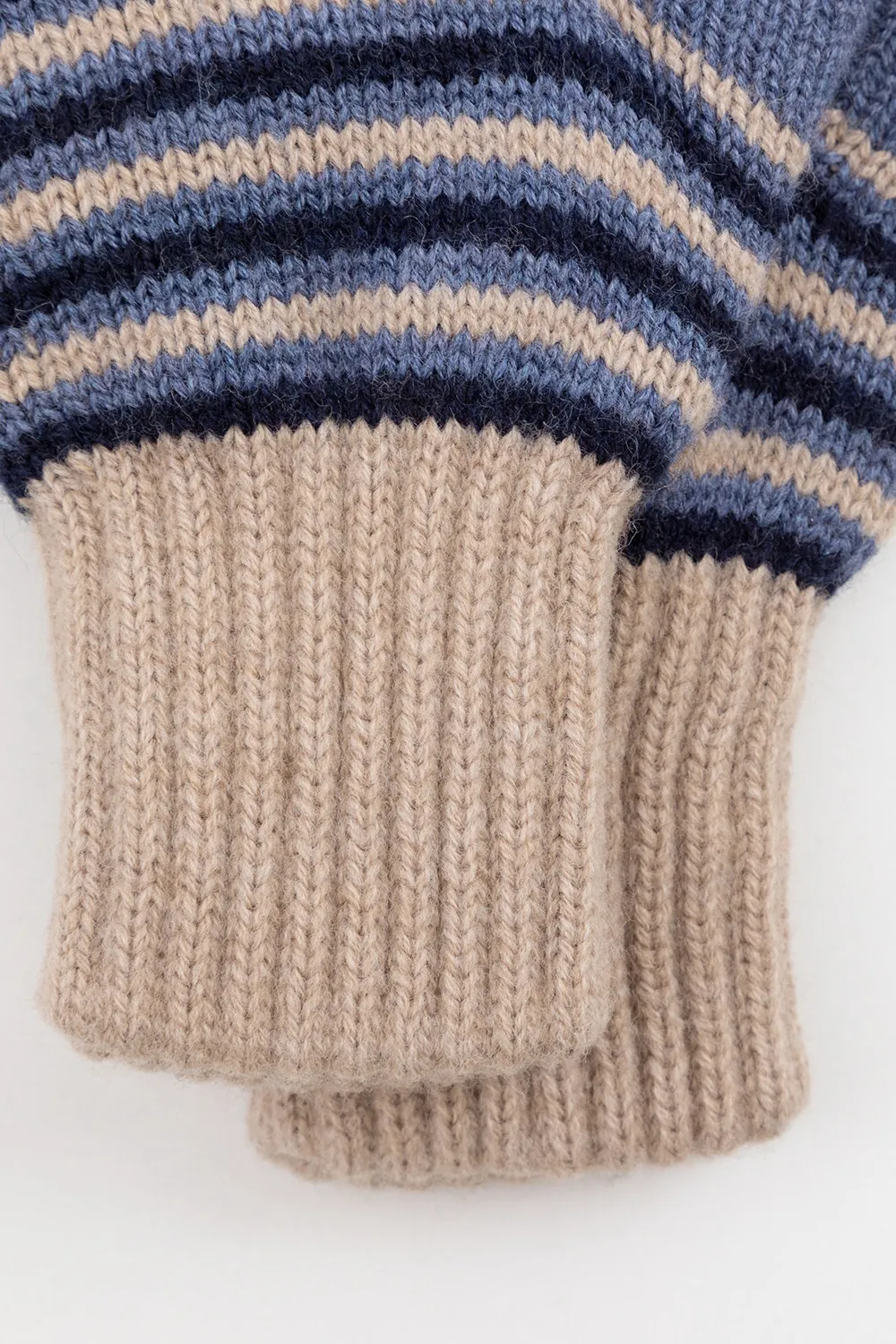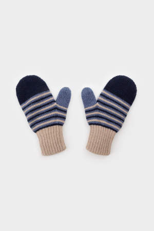 Варежки в полоску из полушерстяной пряжи. Эластичные манжеты фиксируют перчатку на руке.
