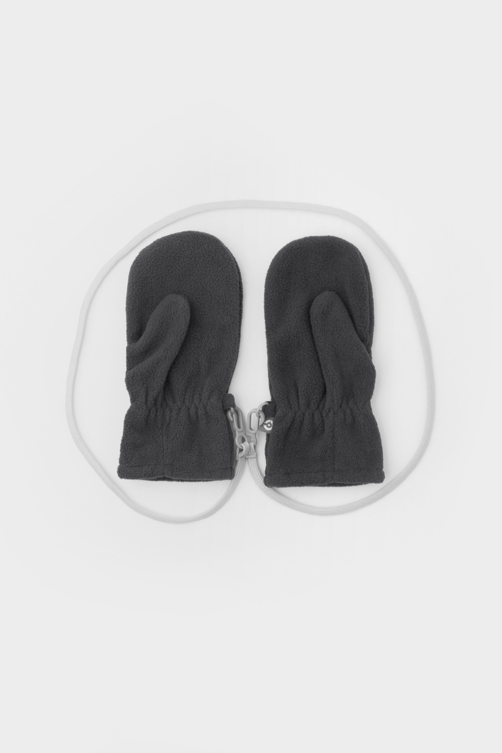 Флисовые варежки детские на шнурке. В области запястья вшита эластичная резинка. Варежки сохраняют цвет и форму после многократных стирок.