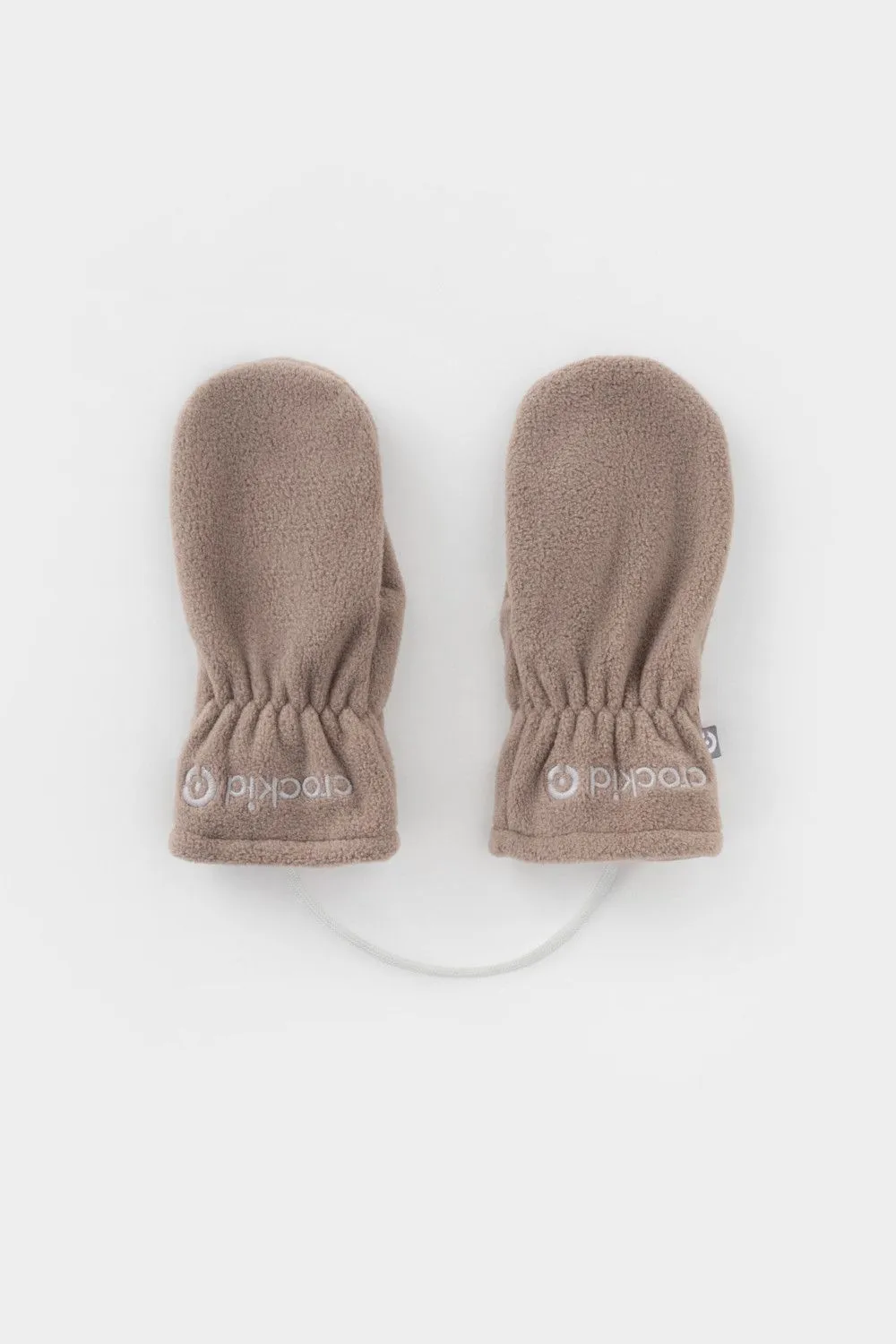 Флисовые варежки детские на шнурке. В области запястья вшита эластичная резинка. Варежки сохраняют цвет и форму после многократных стирок.