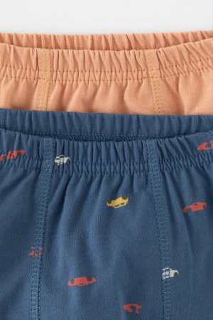 Упаковка трикотажных трусов, произведённых из натурального хлопка. Оригинальная набивка выполнена из стойких, гипоаллергенных текстильных красителей. Сохраняют цвет и форму после многократных стирок. Все трикотажные полотна производятся в соответсвии с нормами Швейцарского сертификата ЭкоТекс.