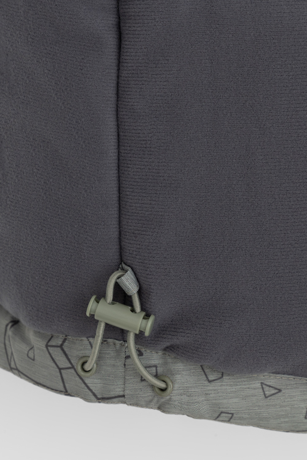 • Несъёмный капюшон с эластичными вставками по бокам.