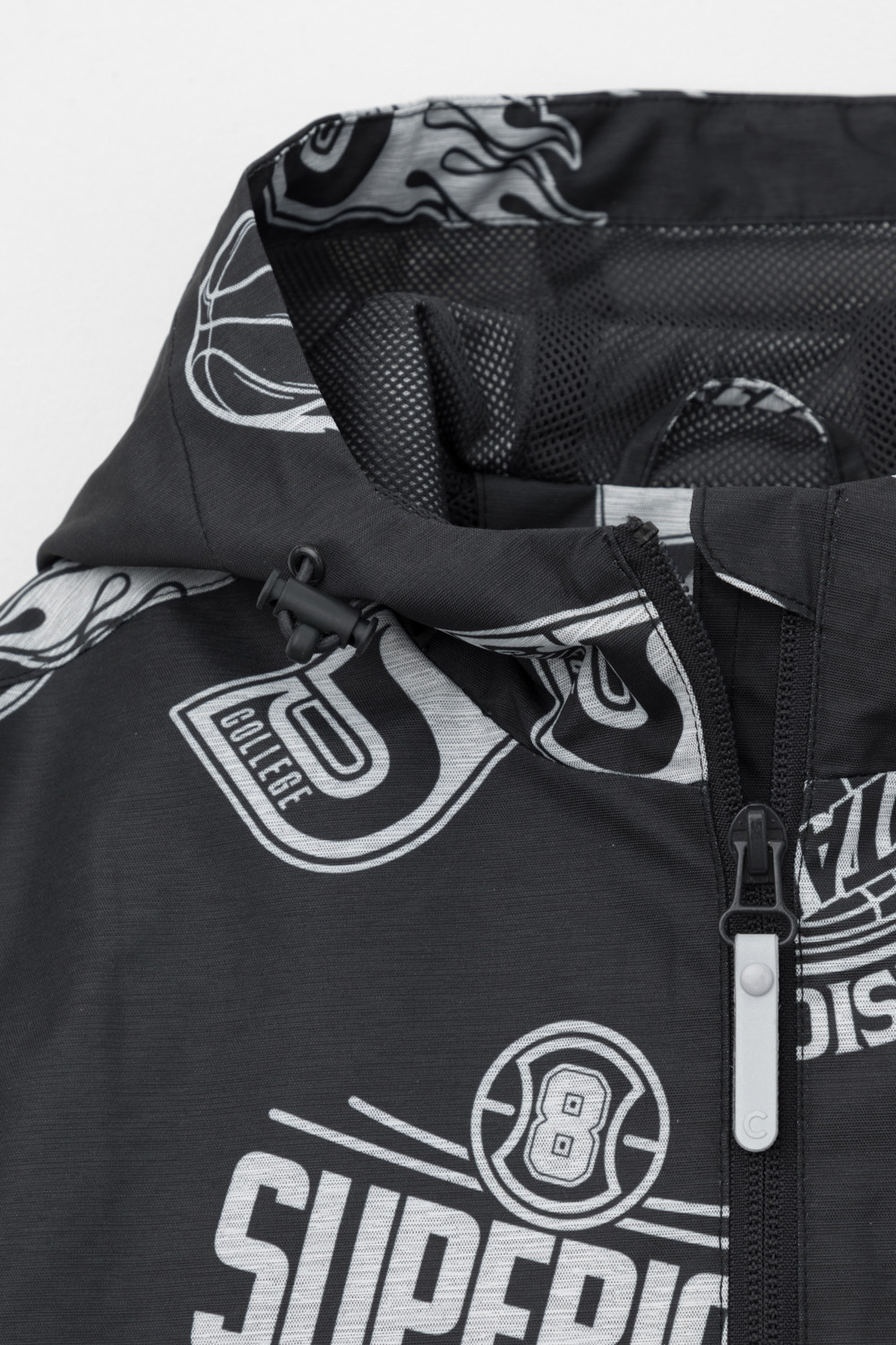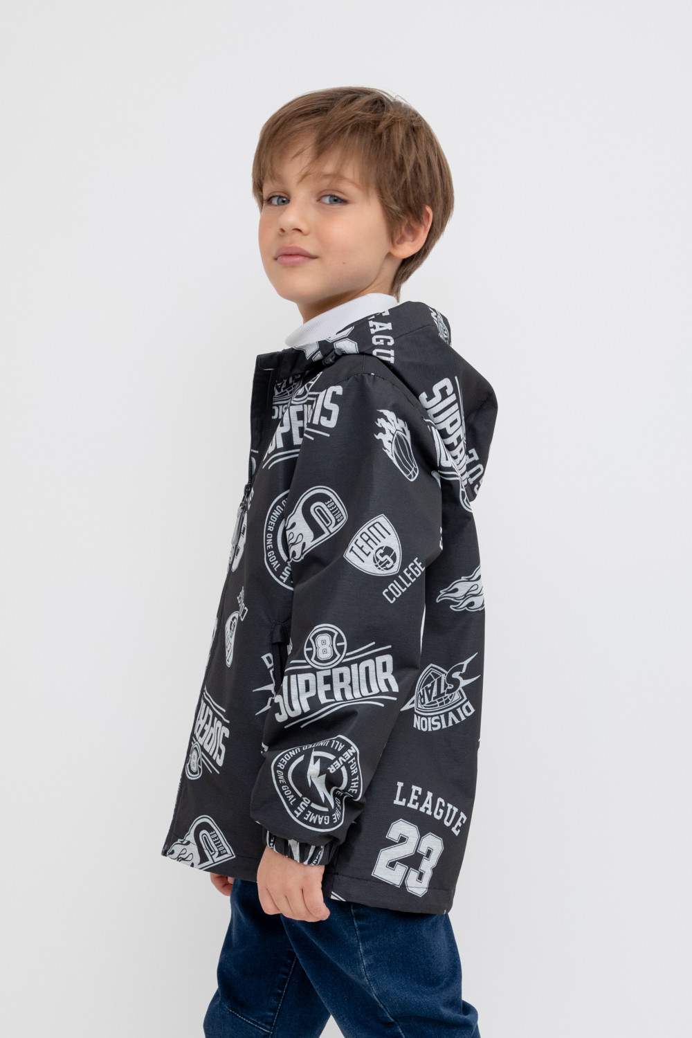 Ветровка для мальчика из мембранной ткани с дополнительной тефлоновой обработкой. Данный вид обработки предохраняет изделие от загрязнения и лучше отводит влагу. Подклад из 100% полиэстера. У изделия предусмотрена защита подбородка. Несъемный капюшон регулируется с помощью эластичного шнура со стопперами. Низ рукавов имеет эластичную резинку для лучшего прилегания. Боковые карманы на молнии. Во всех изделиях верхнего ассортимента для безопасности ребенка предусмотрены светоотражающие элементы.