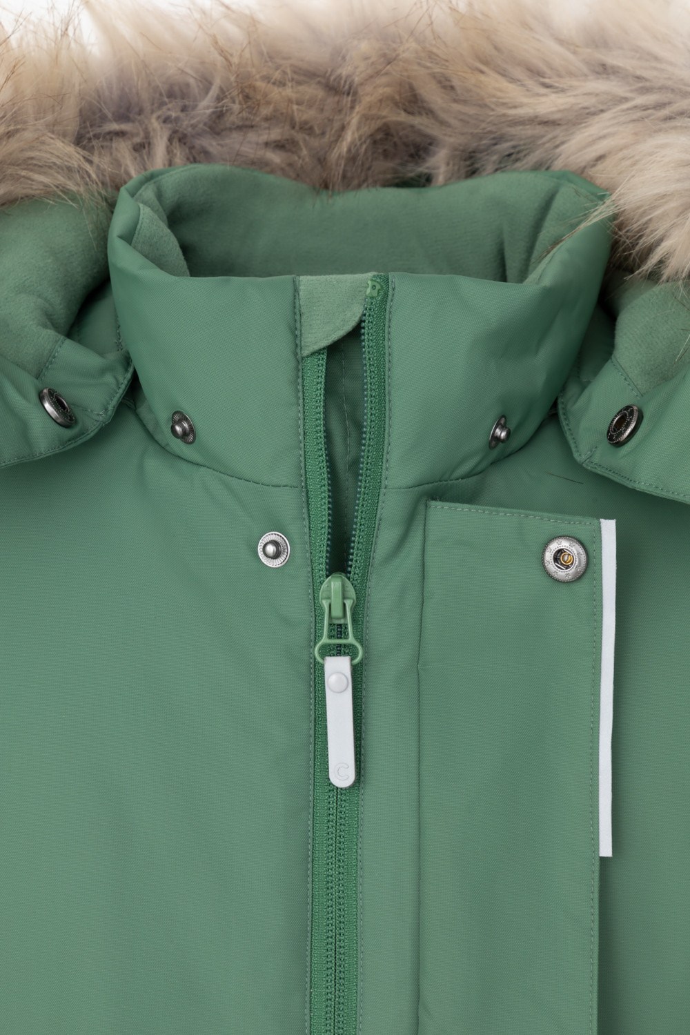 • Съемный капюшон на липучках с отстегивающимся искусственным мехом