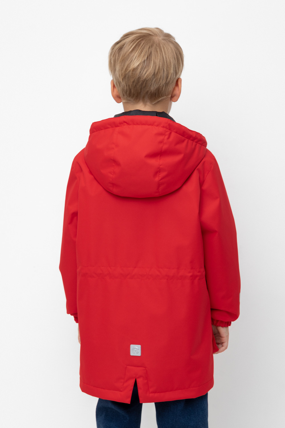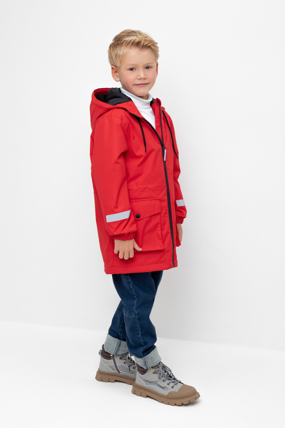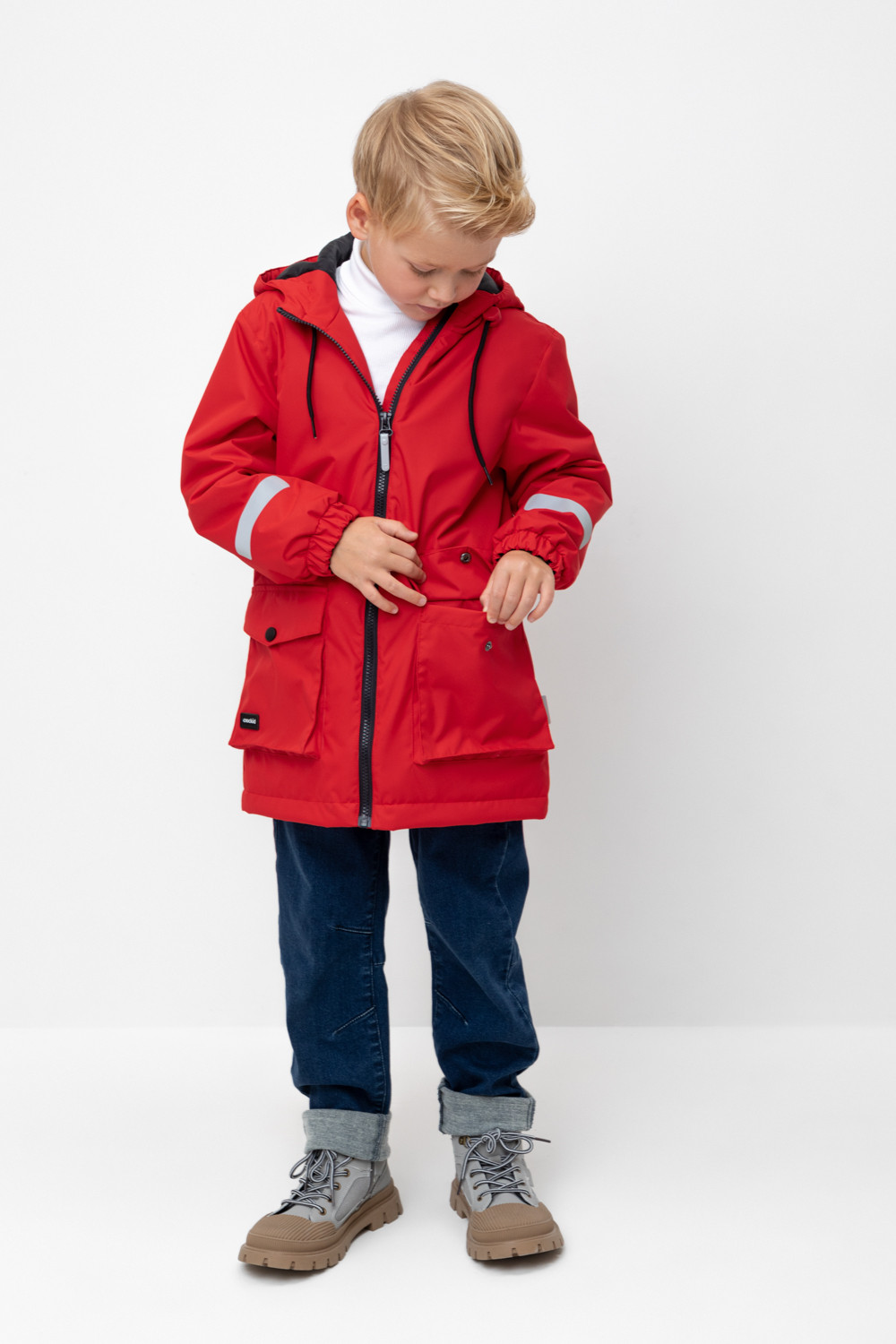 Демисезонная куртка для мальчика с утеплителем SEE®: 120 г/м2. Выполнена из мембранной ткани с дополнительной тефлоновой обработкой. Данный вид обработки предохраняет изделие от загрязнения и лучше отводит влагу. Подклад из 100% полиэстера. У изделия предусмотрена защита подбородка. Несъемный капюшон имеет эластичную утяжку со стопперами. Низ рукавов на эластичной резинке для лучшего прилегания. На талии утяжка при помощи шнура со стопперами. По бокам два накладных кармана с клапанами. Во всех изделиях верхнего ассортимента для безопасности ребенка предусмотрены светоотражающие элементы.