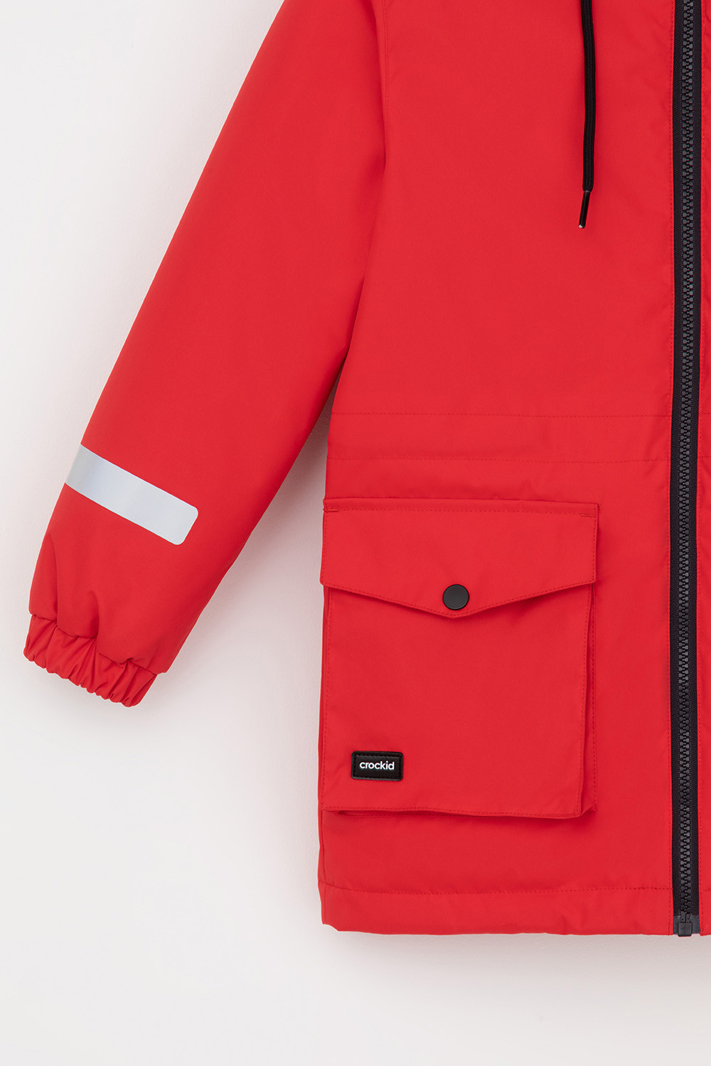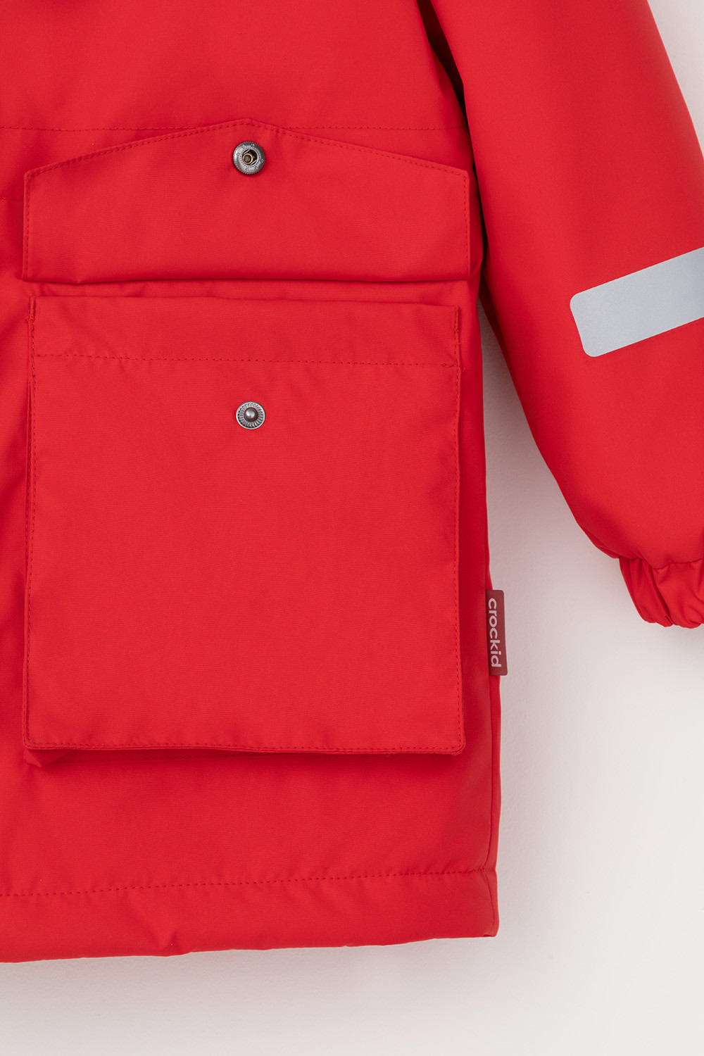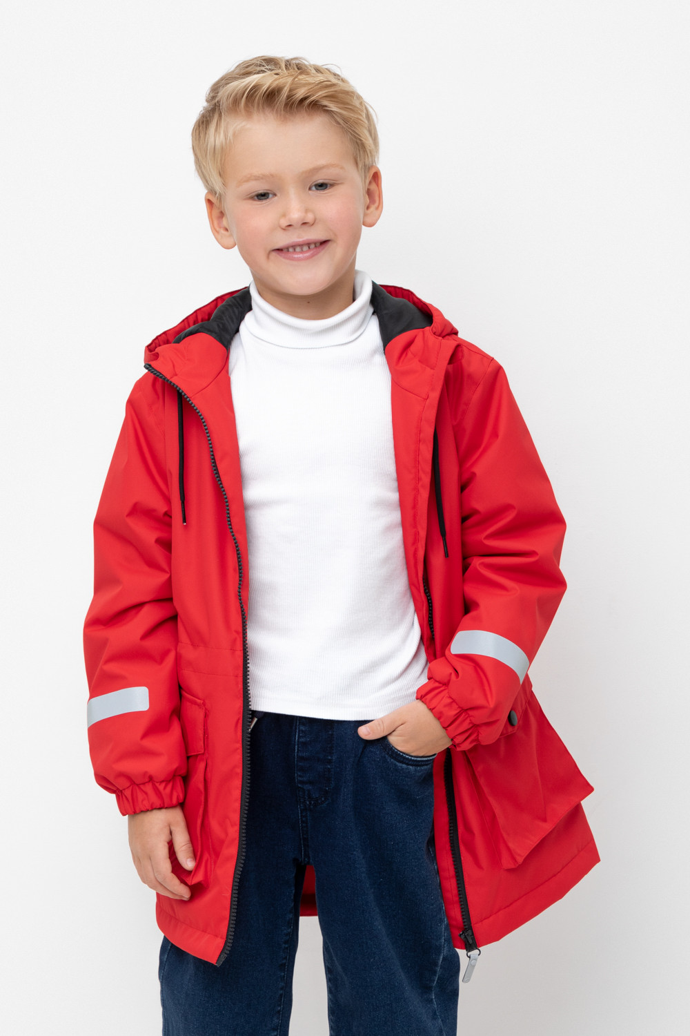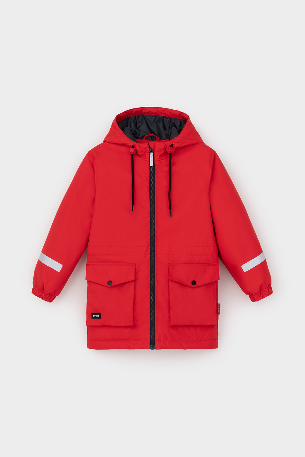 Демисезонная куртка для мальчика с утеплителем SEE®: 120 г/м2. Выполнена из мембранной ткани с дополнительной тефлоновой обработкой. Данный вид обработки предохраняет изделие от загрязнения и лучше отводит влагу. Подклад из 100% полиэстера. У изделия предусмотрена защита подбородка. Несъемный капюшон имеет эластичную утяжку со стопперами. Низ рукавов на эластичной резинке для лучшего прилегания. На талии утяжка при помощи шнура со стопперами. По бокам два накладных кармана с клапанами. Во всех изделиях верхнего ассортимента для безопасности ребенка предусмотрены светоотражающие элементы.