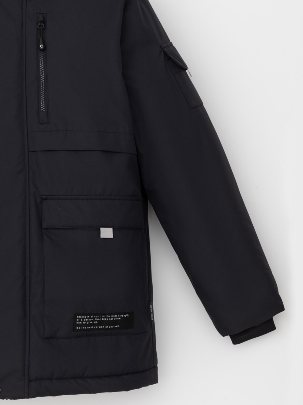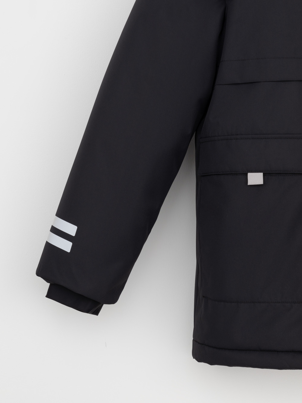 Зимняя куртка для мальчика с утеплителем SEE®: 250 г/м2. Выполнена из мембранной ткани с дополнительной тефлоновой обработкой, которая предохраняет изделие от загрязнений и отталкивает влагу. Подклад выполнен из 100% полиэстера Tricot. Куртка застёгивается на молнию и на дополнительную планку с кнопками. У изделия предусмотрена защита подбородка. Несъёмный капюшон имеет эластичную утяжку со стопперами, глубина капюшона регулируется при помощи липучки. На рукавах внутренние эластичные манжеты. Два накладных кармана с клапанами по бокам и один карман на груди. Во всех изделиях верхнего ассортимента для безопасности ребёнка предусмотрены светоотражающие элементы.
