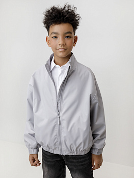 Ветровка для мальчика из ткани с дополнительной тефлоновой обработкой. Верхний слой обеспечивает надёжную влагостойкость и воздухопроницаемость. Подклад из 100% полиэстера. У изделия удобная застёжка на молнию и воротник-стойка. На рукавах эластичные манжеты. Эластичная резинка по низу изделия. По бокам два удобных кармана. Светоотражающие элементы служат для дополнительной безопасности в тёмное время суток.