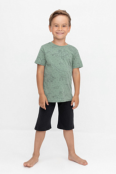 Трикотажная пижама из натурального хлопка. Футболка с короткими рукавами . У шорт эластичный пояс на резинке. Оригинальная набивка выполнена из стойких, гипоаллергенных текстильных красителей. Пижама сохраняет цвет и форму после многократных стирок. Все трикотажные полотна производятся в соответсвии с нормами Швейцарского сертификата ЭкоТекс.