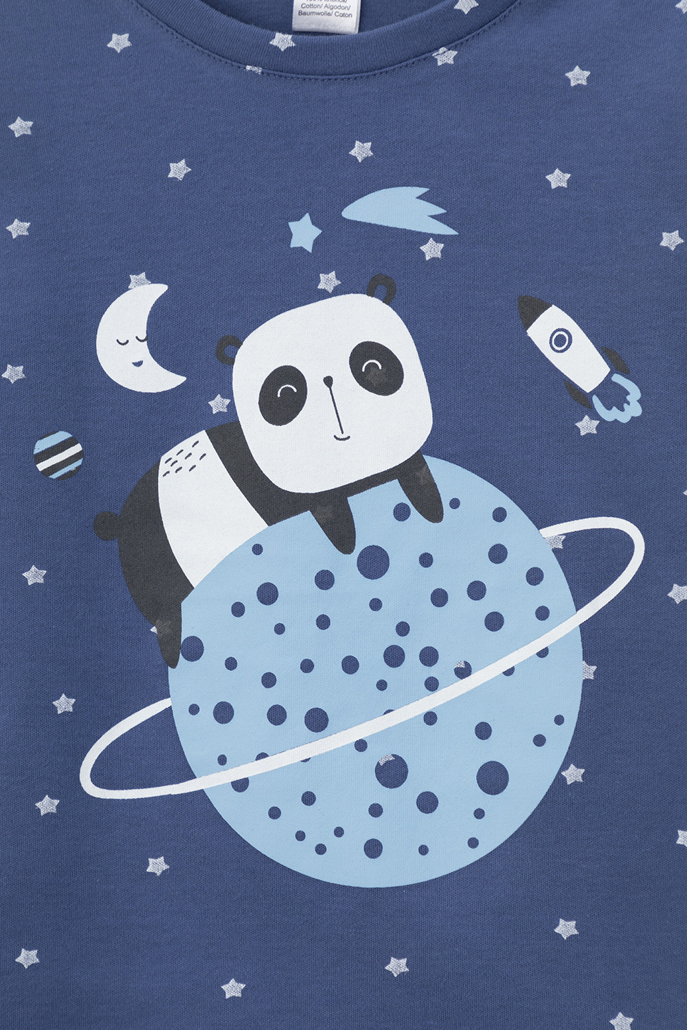 Трикотажная пижама из натурального хлопка. Джемпер с длинными рукавами с эластичными манжетами. У брюк эластичный пояс на резинке. Оригинальная набивка и принт выполнены из стойких, гипоаллергенных текстильных красителей. Пижама сохраняет цвет и форму после многократных стирок. Все трикотажные полотна производятся в соответствии с нормами Швейцарского сертификата ЭкоТекс.