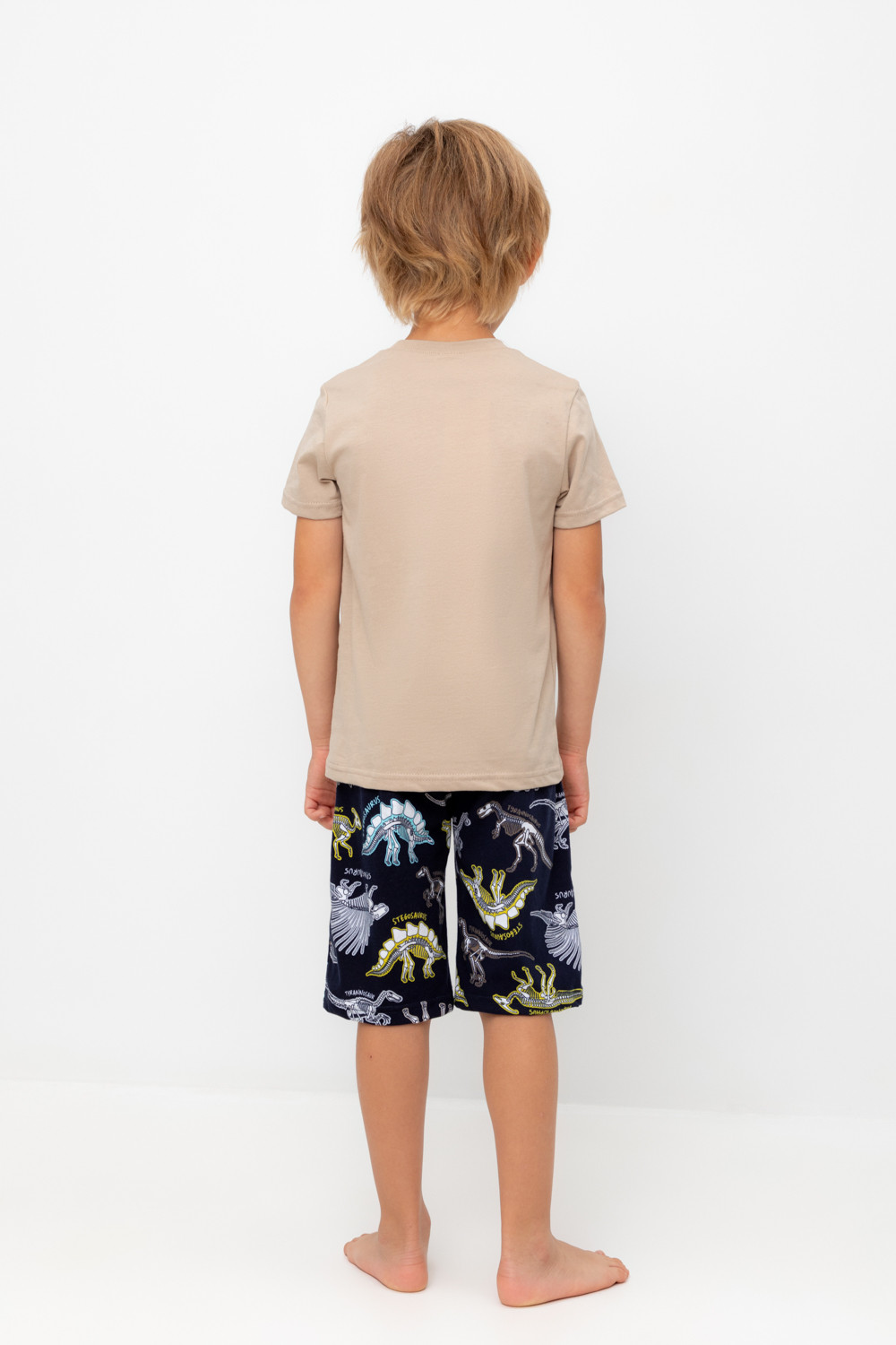 Трикотажная пижама из натурального хлопка. Футболка с короткими рукавами с принтом . У шорт эластичный пояс на резинке. Оригинальная набивка выполнена из стойких, гипоаллергенных текстильных красителей. Пижама сохраняет цвет и форму после многократных стирок. Все трикотажные полотна производятся в соответсвии с нормами Швейцарского сертификата ЭкоТекс.