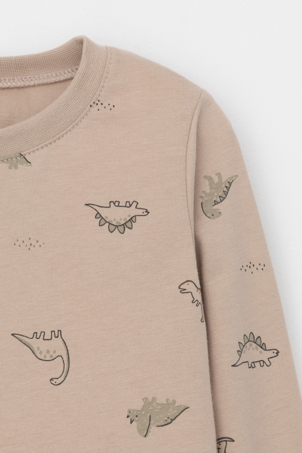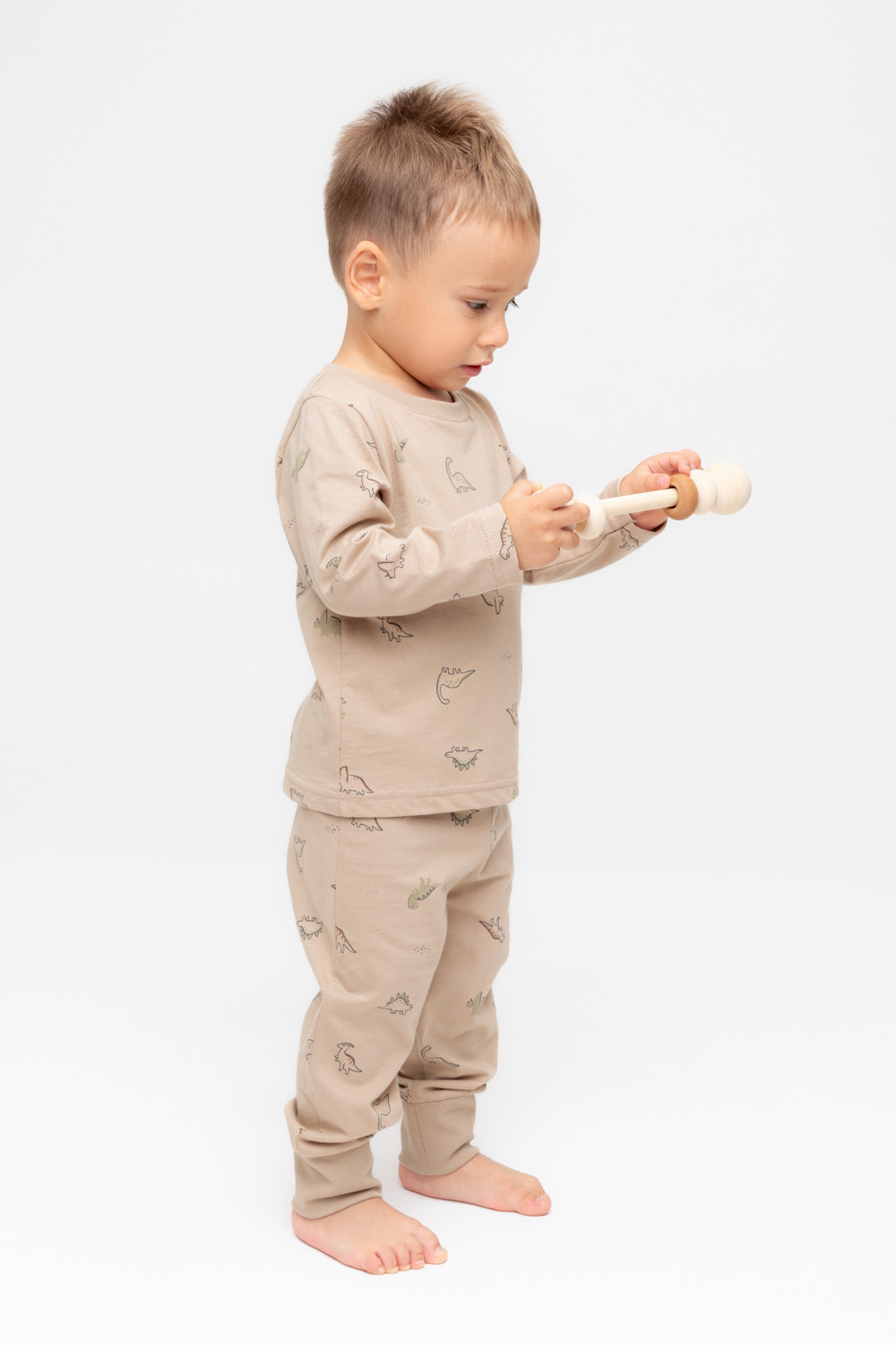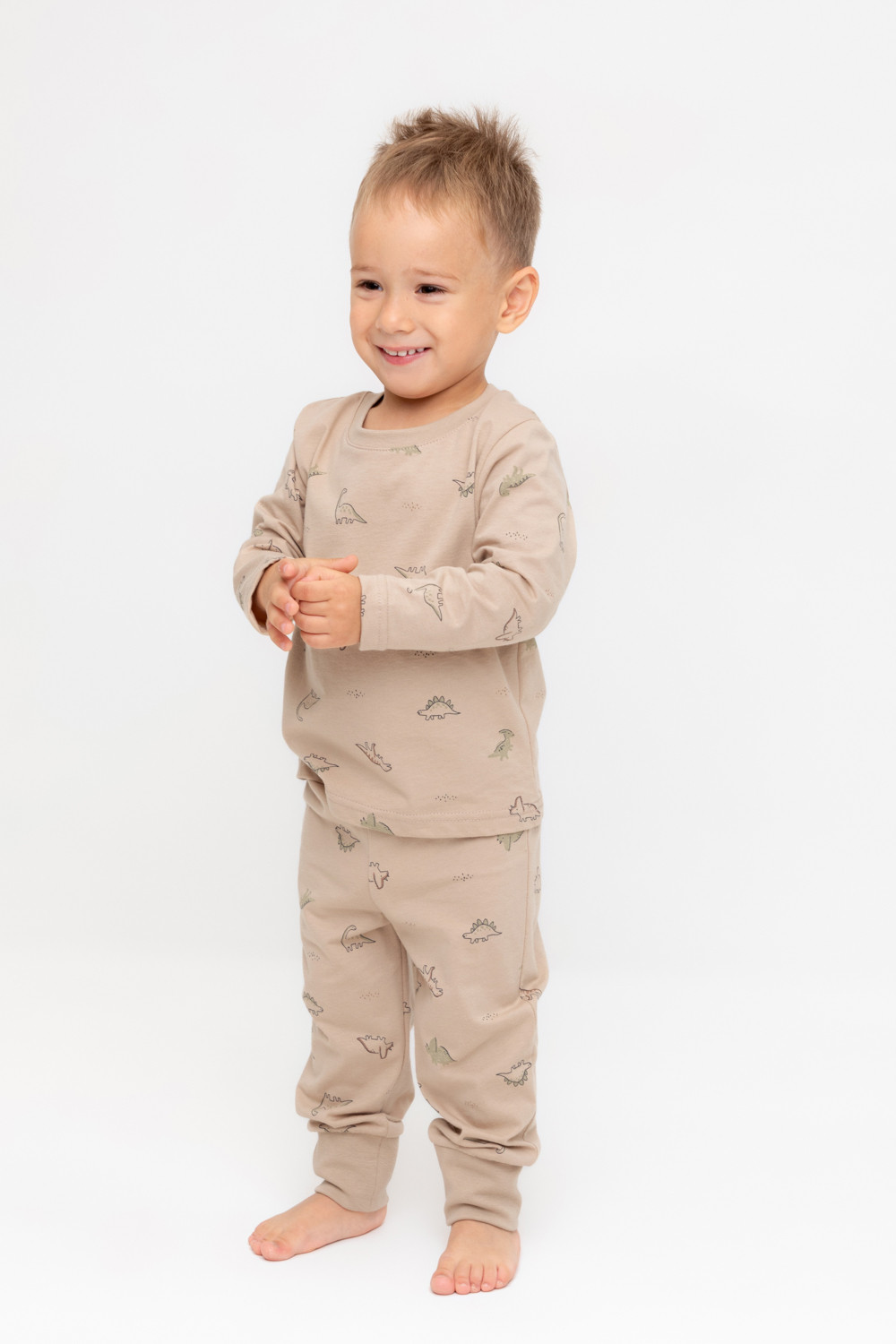 Трикотажная пижама из натурального хлопка. Джемпер с длинными рукавами с эластичными манжетами. У брюк эластичный пояс на резинке. Оригинальная набивка и принт выполнены из стойких, гипоаллергенных текстильных красителей. Пижама сохраняет цвет и форму после многократных стирок. Все трикотажные полотна производятся в соответствии с нормами Швейцарского сертификата ЭкоТекс.