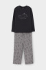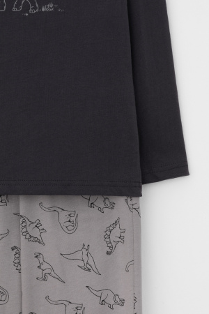 Трикотажная пижама из натурального хлопка.  Джемпер с длинными рукавами с принтом. У брюк эластичный пояс на резинке. Оригинальные принт и набивка выполнены из стойких, гипоаллергенных текстильных красителей. Пижама сохраняет цвет и форму после многократных стирок. Все трикотажные полотна производятся в соответсвии с нормами Швейцарского сертификата ЭкоТекс.