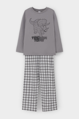 Трикотажная пижама из натурального хлопка. Джемпер с длинными втачными рукавами и прямые брюки с эластичной резинкой в поясе. Оригинальные набивка и принт выполнены из стойких гипоаллергенных текстильных гипоаллергенных красителей. Изделие сохраняет цвет и форму после многократных стирок. Все трикотажные полотна производятся в соответсвии с нормами швейцарского сертификата ЭкоТекс.