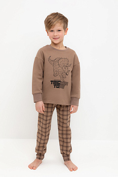 Трикотажная пижама с начёсом из натурального хлопка. Джемпер с длинными спущенными рукавами и брюки с эластичной резинкой в поясе. Мягкие манжеты на рукавах и по низу брюк. Оригинальные набивка и принт выполнены из стойких гипоаллергенных текстильных гипоаллергенных красителей. Изделие сохраняет цвет и форму после многократных стирок. Все трикотажные полотна производятся в соответсвии с нормами швейцарского сертификата ЭкоТекс.