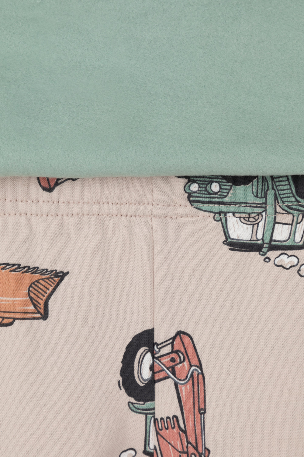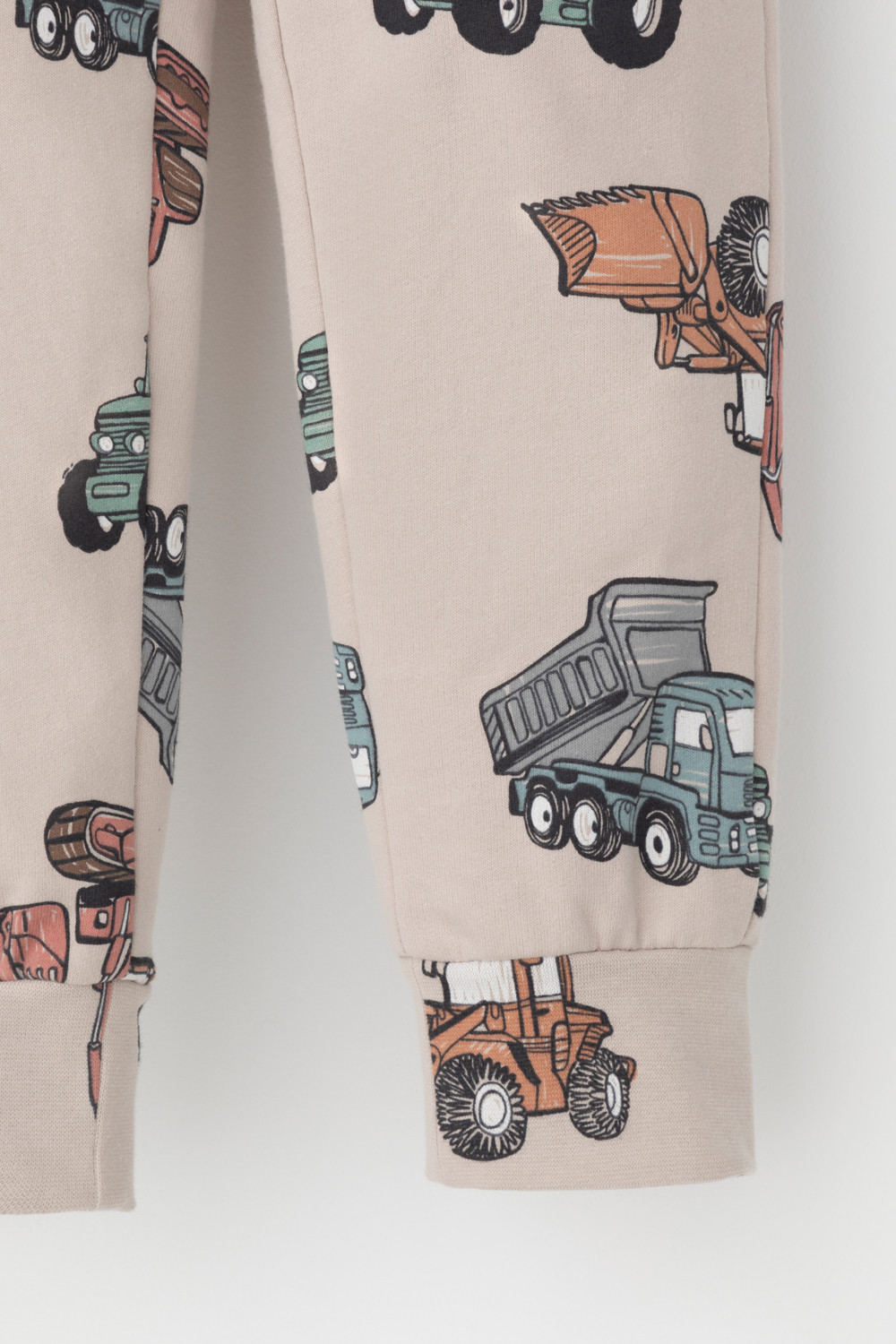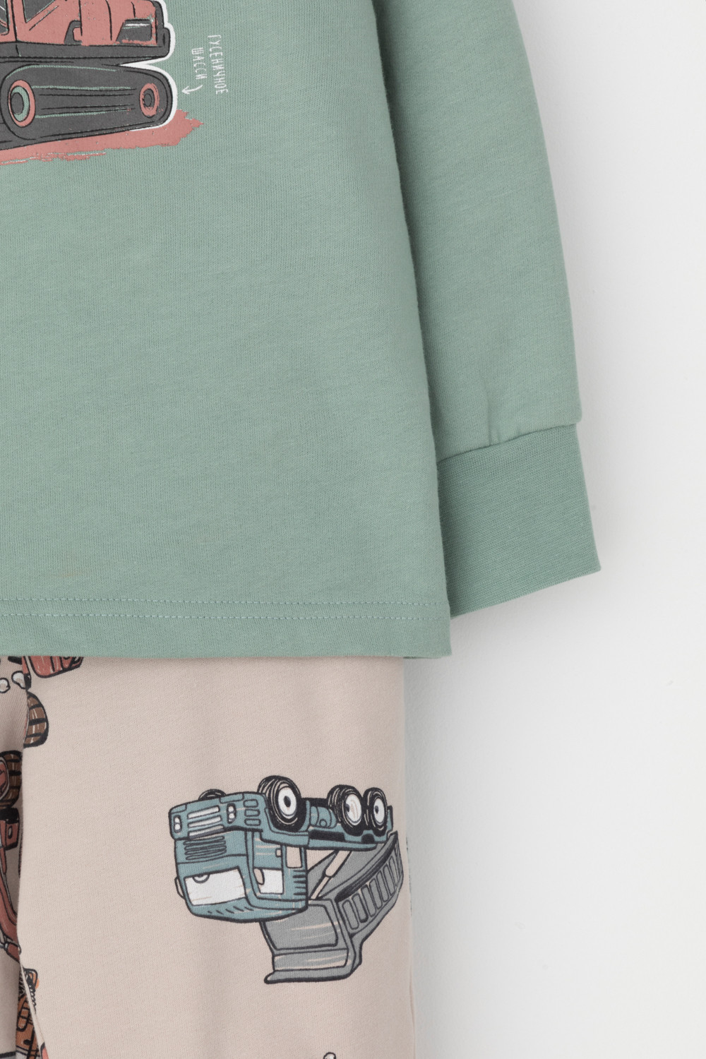 Трикотажная пижама с начёсом из натурального хлопка. Джемпер с длинными спущенными рукавами и брюки с эластичной резинкой в поясе. Мягкие манжеты на рукавах и по низу брюк. Оригинальные набивка и принт выполнены из стойких гипоаллергенных текстильных гипоаллергенных красителей. Изделие сохраняет цвет и форму после многократных стирок. Все трикотажные полотна производятся в соответсвии с нормами швейцарского сертификата ЭкоТекс.