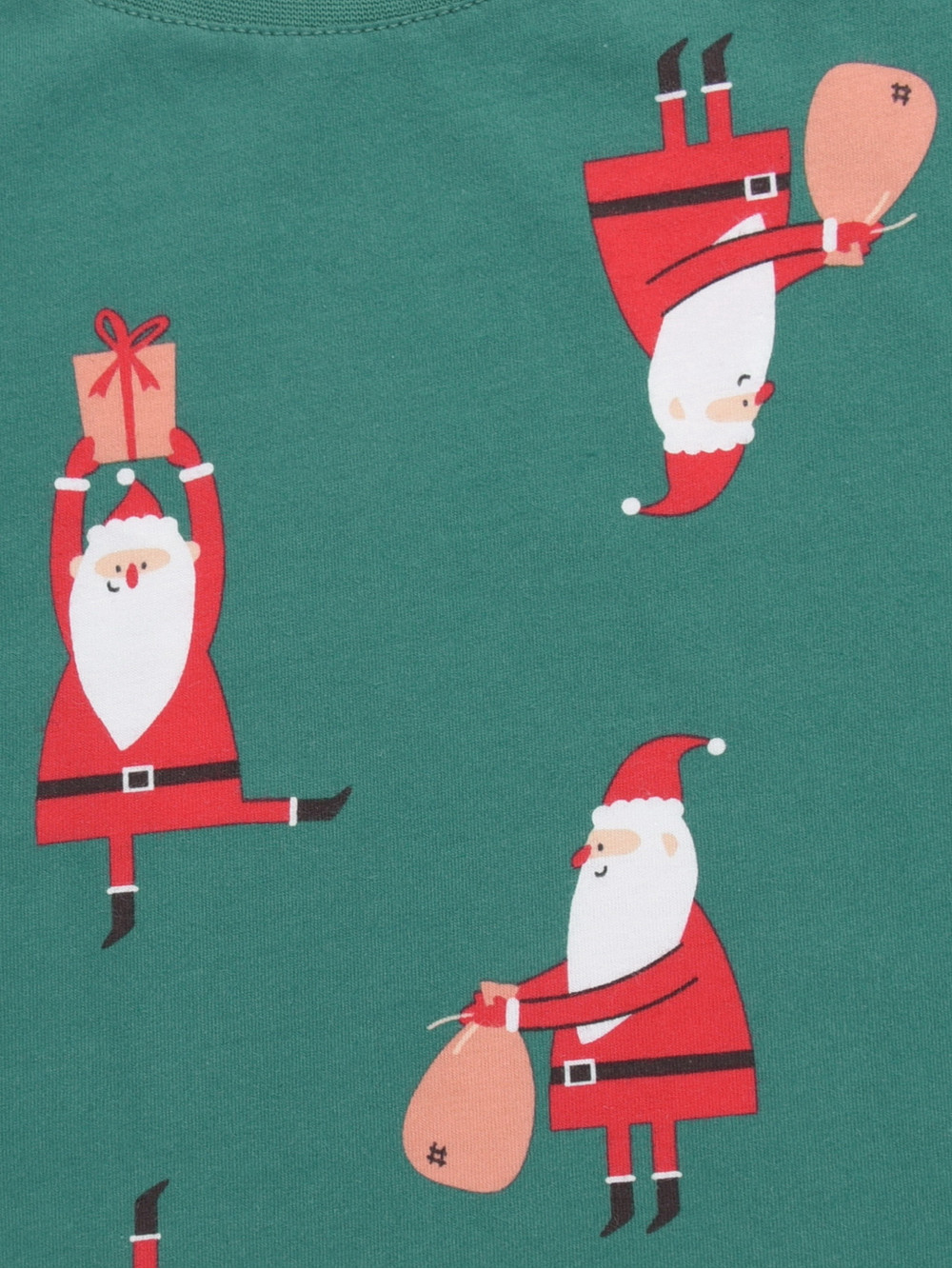 Новогодняя пижама из натурального хлопка.  Джемпер с длинными втачными рукавами и брюки с эластичной резинкой в поясе. Мягкие манжеты на рукавах и по низу брюк. Пижама отлично подойдёт для создания уютных домашних образов или в качестве подарка на Новый год и Рождество. Оригинальная набивка выполнена из стойких текстильных гипоаллергенных красителей. Изделие сохраняет цвет и форму после многократных стирок. Все трикотажные полотна производятся в соответствии с нормами швейцарского сертификата ЭкоТекс.