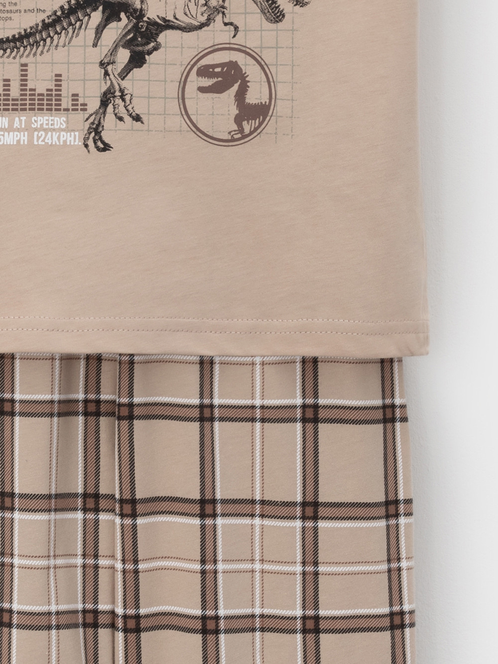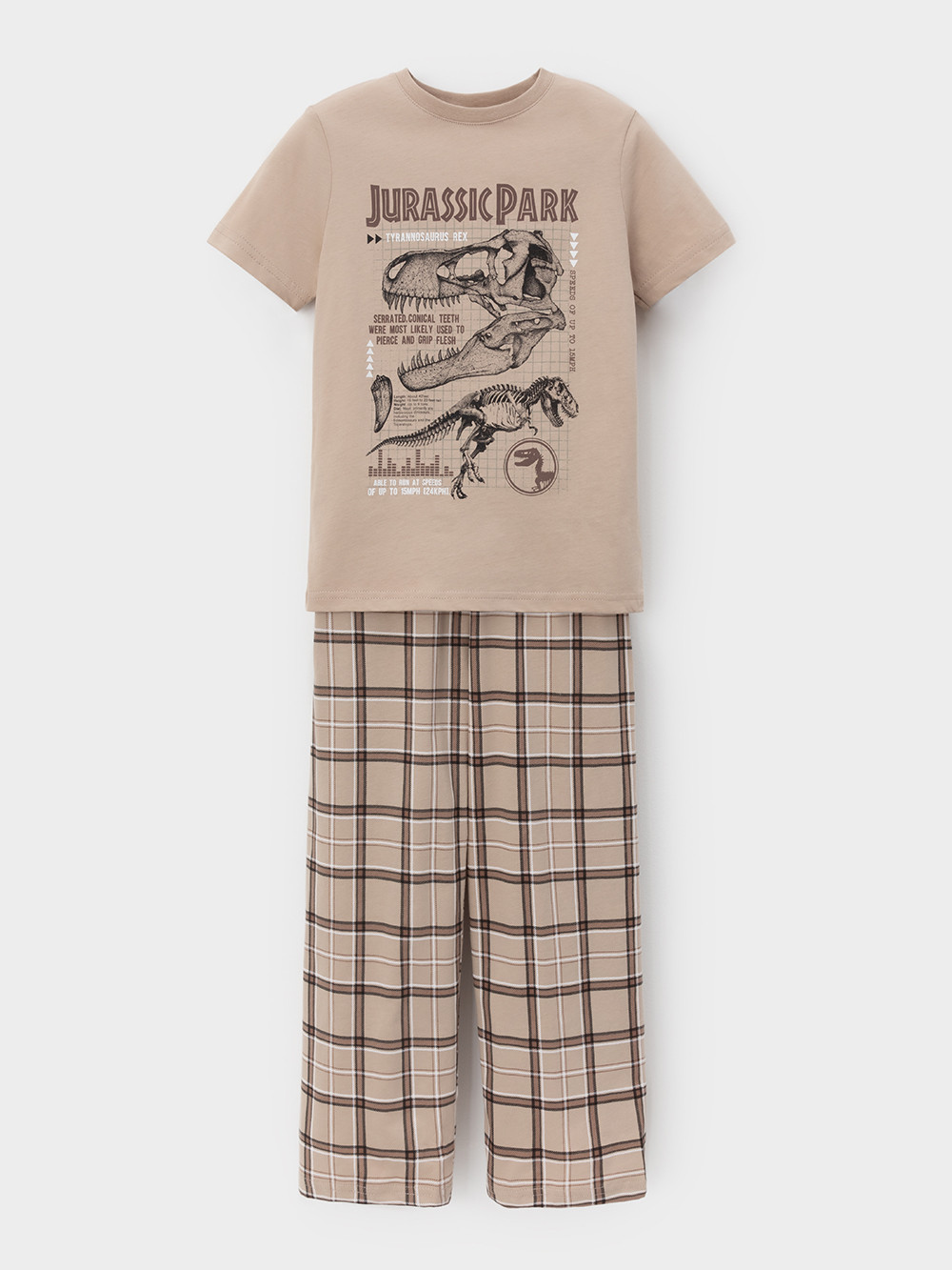 Трикотажная пижама из натурального хлопка. Футболка с короткими втачными рукавами и прямые брюки с эластичной резинкой в поясе. Оригинальные набивка и принт выполнены из стойких гипоаллергенных текстильных красителей. Изделие сохраняет цвет и форму после многократных стирок. Все трикотажные полотна производятся в соответсвии с нормами швейцарского сертификата ЭкоТекс.