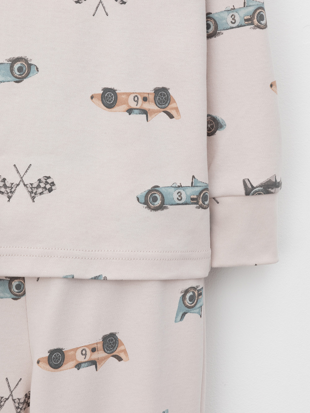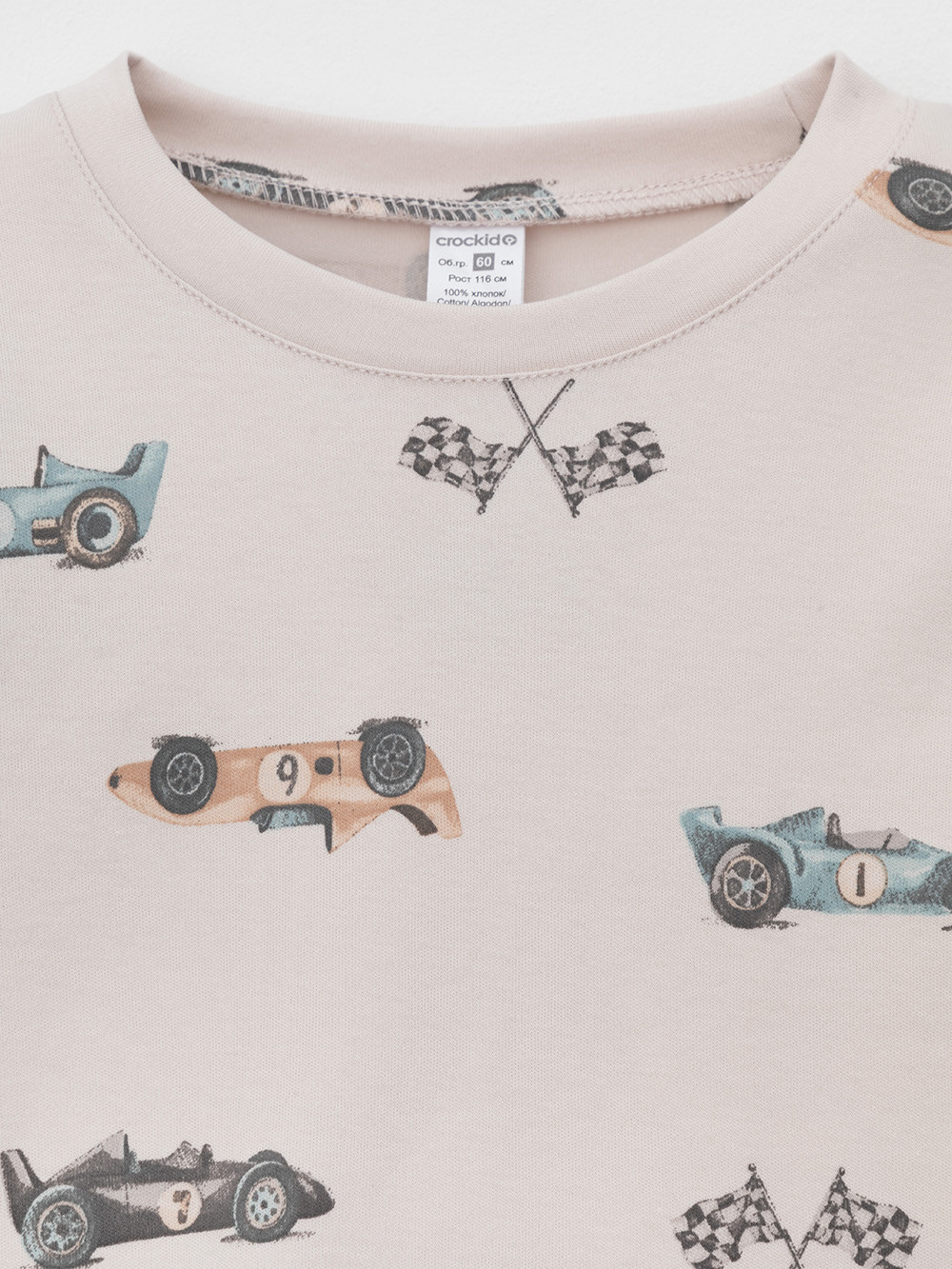 Трикотажная пижама из натурального хлопка. Джемпер с длинными втачными рукавами и брюки с эластичной резинкой в поясе. Мягкие манжеты на рукавах и по низу брюк. Оригинальная набивка выполнена из стойких текстильных гипоаллергенных красителей. Изделие сохраняет цвет и форму после многократных стирок. Все трикотажные полотна производятся в соответствии с нормами швейцарского сертификата ЭкоТекс.