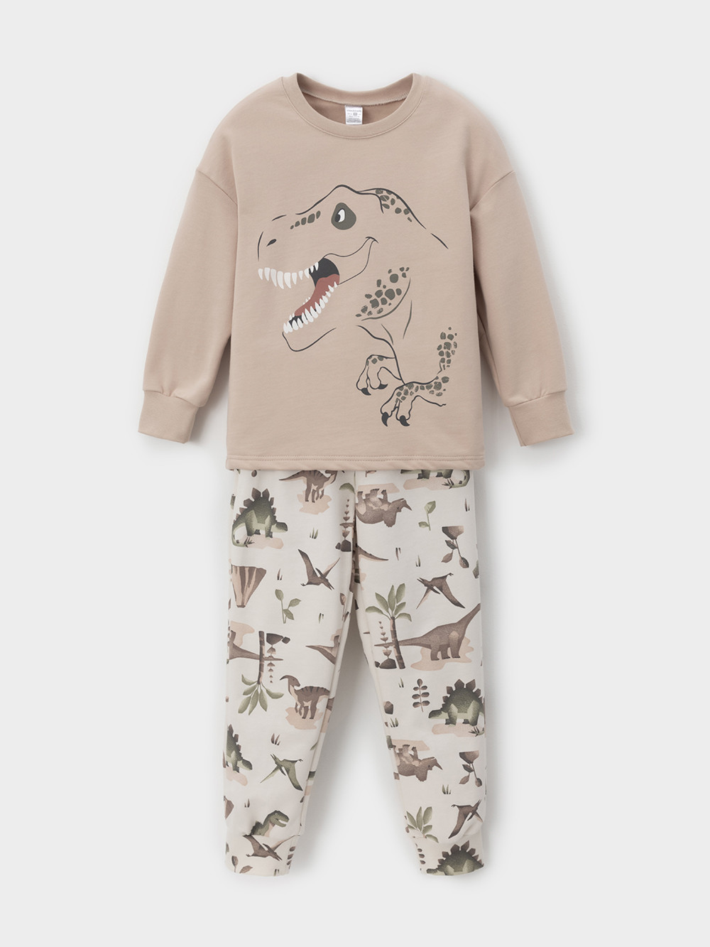 Тёплая пижама с начёсом из натурального хлопка. Джемпер с длинными спущенными рукавами и брюки с эластичной резинкой в поясе. Мягкие манжеты на рукавах и по низу брюк. Оригинальные набивка и принт выполнены из стойких гипоаллергенных текстильных красителей. Изделие сохраняет цвет и форму после многократных стирок. Все трикотажные полотна производятся в соответствии с нормами швейцарского сертификата ЭкоТекс.