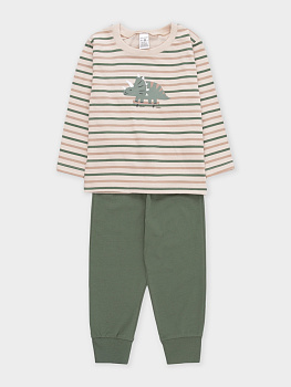 Пижама для мальчика из натурального хлопка. Джемпер с длинными втачными рукавами и брюки с эластичной резинкой в поясе. Мягкие манжеты по низу брюк сделаны из материала в рубчик. Оригинальная набивка и принт выполнены из стойких текстильных гипоаллергенных красителей. Изделие сохраняет цвет и форму после многократных стирок. Все трикотажные полотна производятся в соответствии с нормами швейцарского сертификата ЭкоТекс.