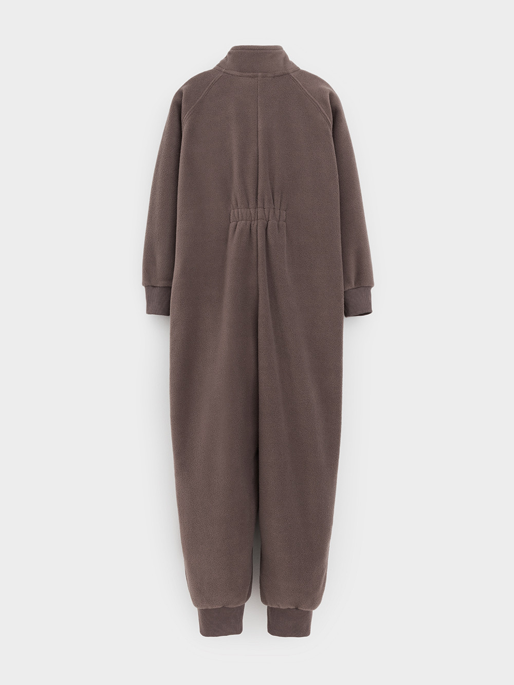 Флисовый комбинезон для мальчика с высоким воротником. Застёгивается на удлинённую молнию с мягкой защитой шеи и подбородка. Рукава и низ изделия на манжетах из  трикотажа в рубчик. Эластичная резинка по спинке обеспечивает идеальную посадку. Спереди удобный карман-кенгуру. Комбинезон сохраняет цвет и форму после многократных стирок.