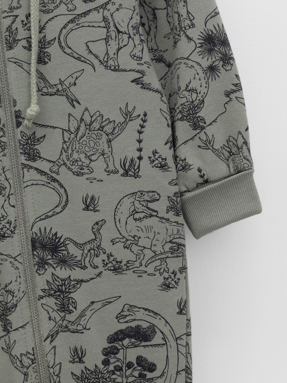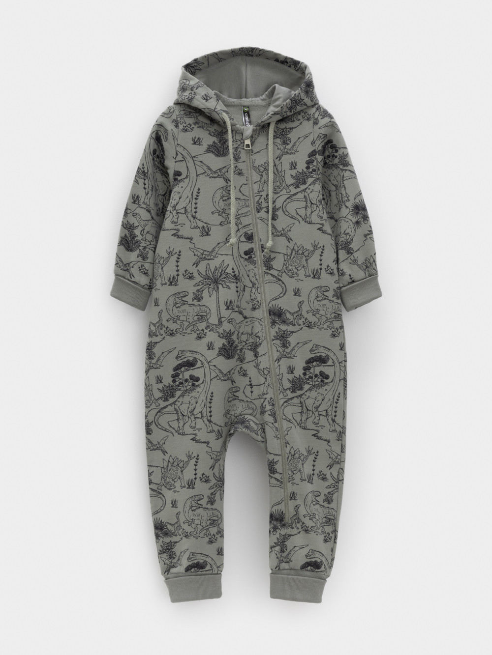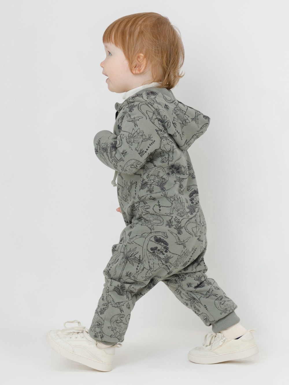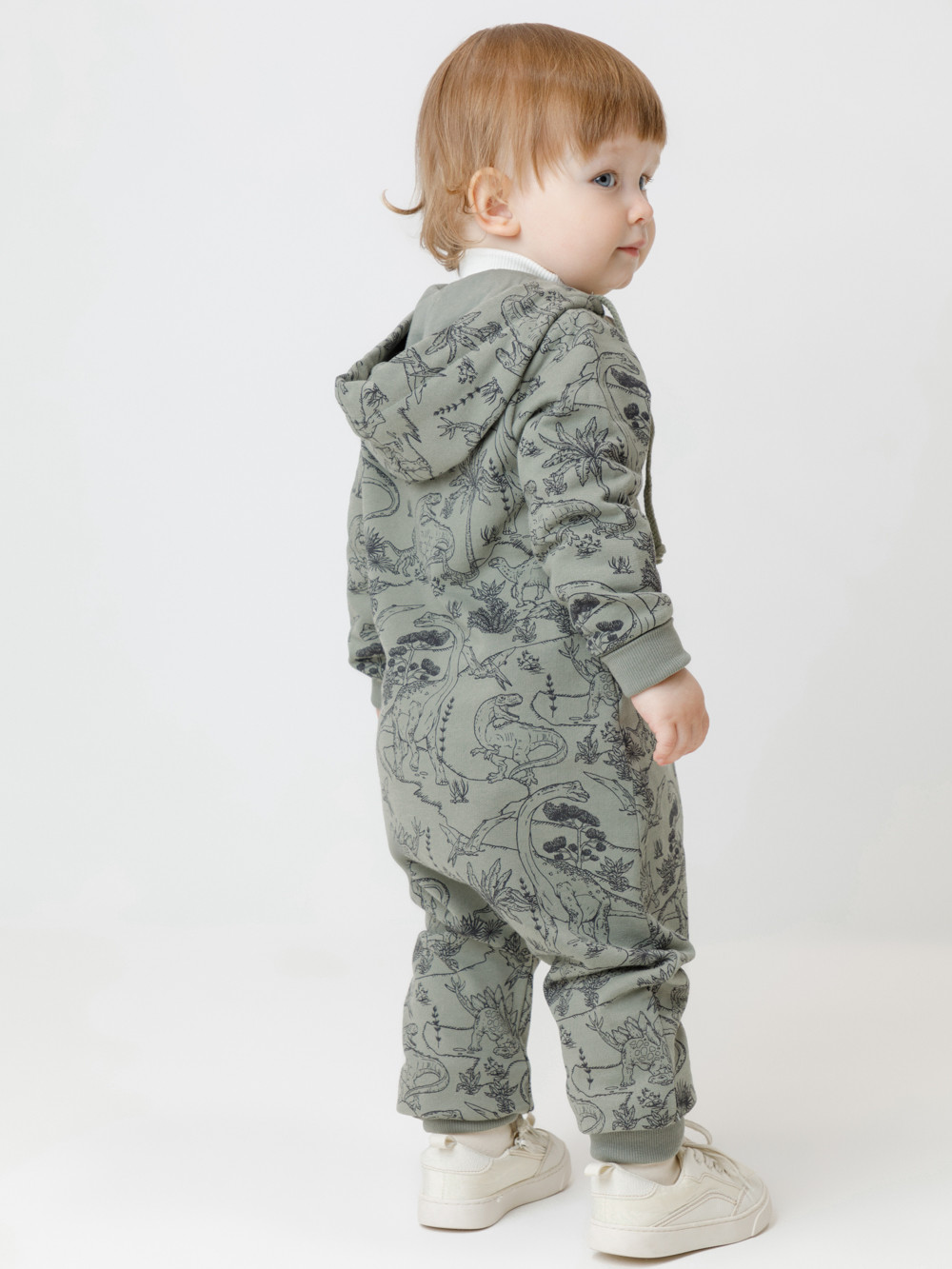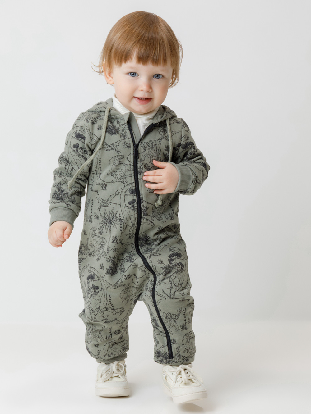 Тёплый комбинезон с капюшоном для мальчика. Изготовлен из высококачественного футера с начёсом. Застёгивается на молнию. В капюшоне мягкий подклад из гладкого материала супрем. Манжеты и пояс выполнены из эластичного полотна. Изделие сохраняет цвет и форму после многократных стирок. Все трикотажные полотна производятся в соответствии с нормами швейцарского сертификата ЭкоТекс.