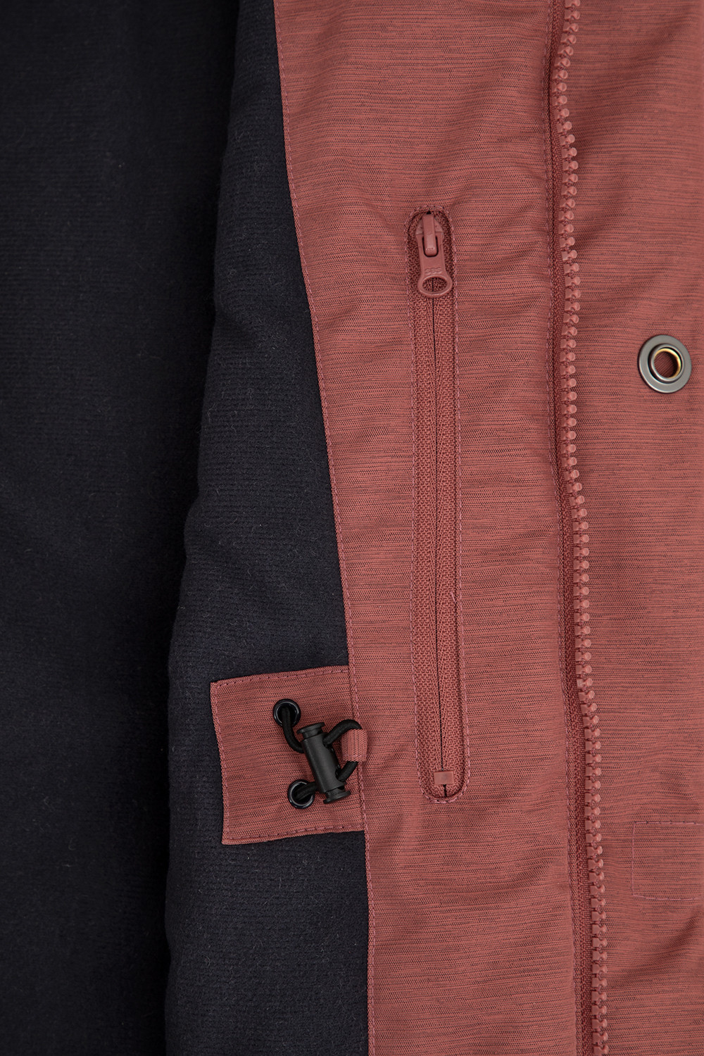 • Эластичная утяжка со стопперами и шнурами на капюшоне