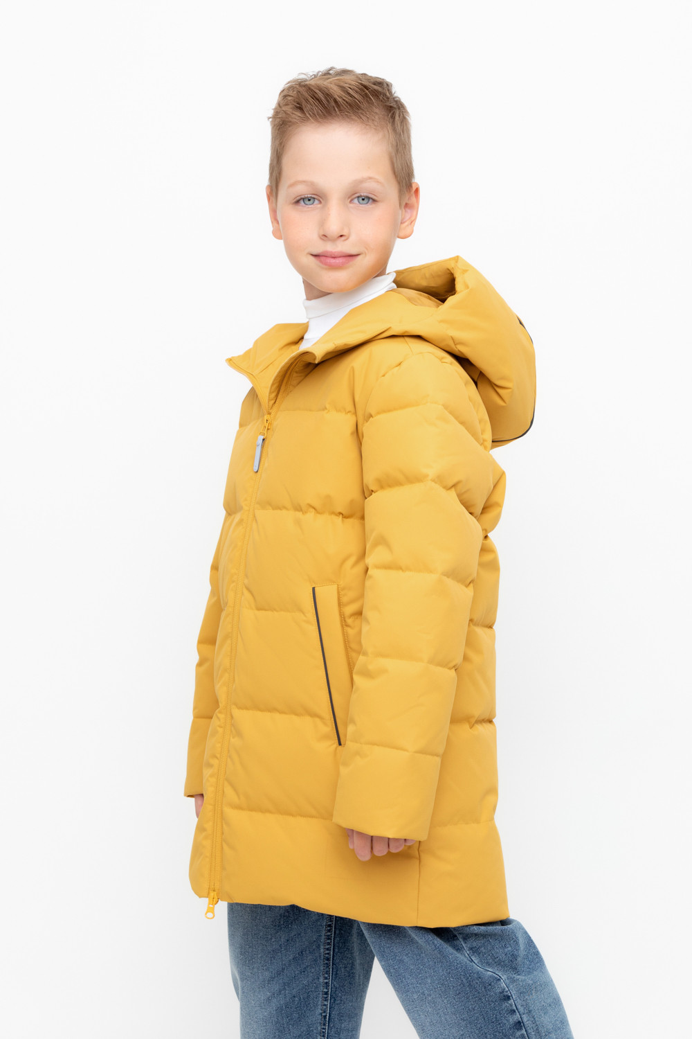 Пальто для мальчика с натуральным утеплителем из гипоаллергенного гусиного пуха (70%) и пера (30%).