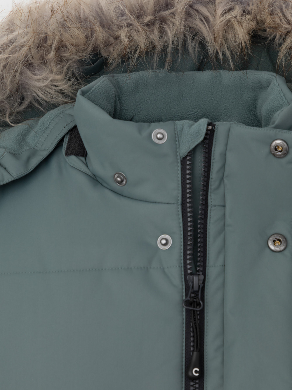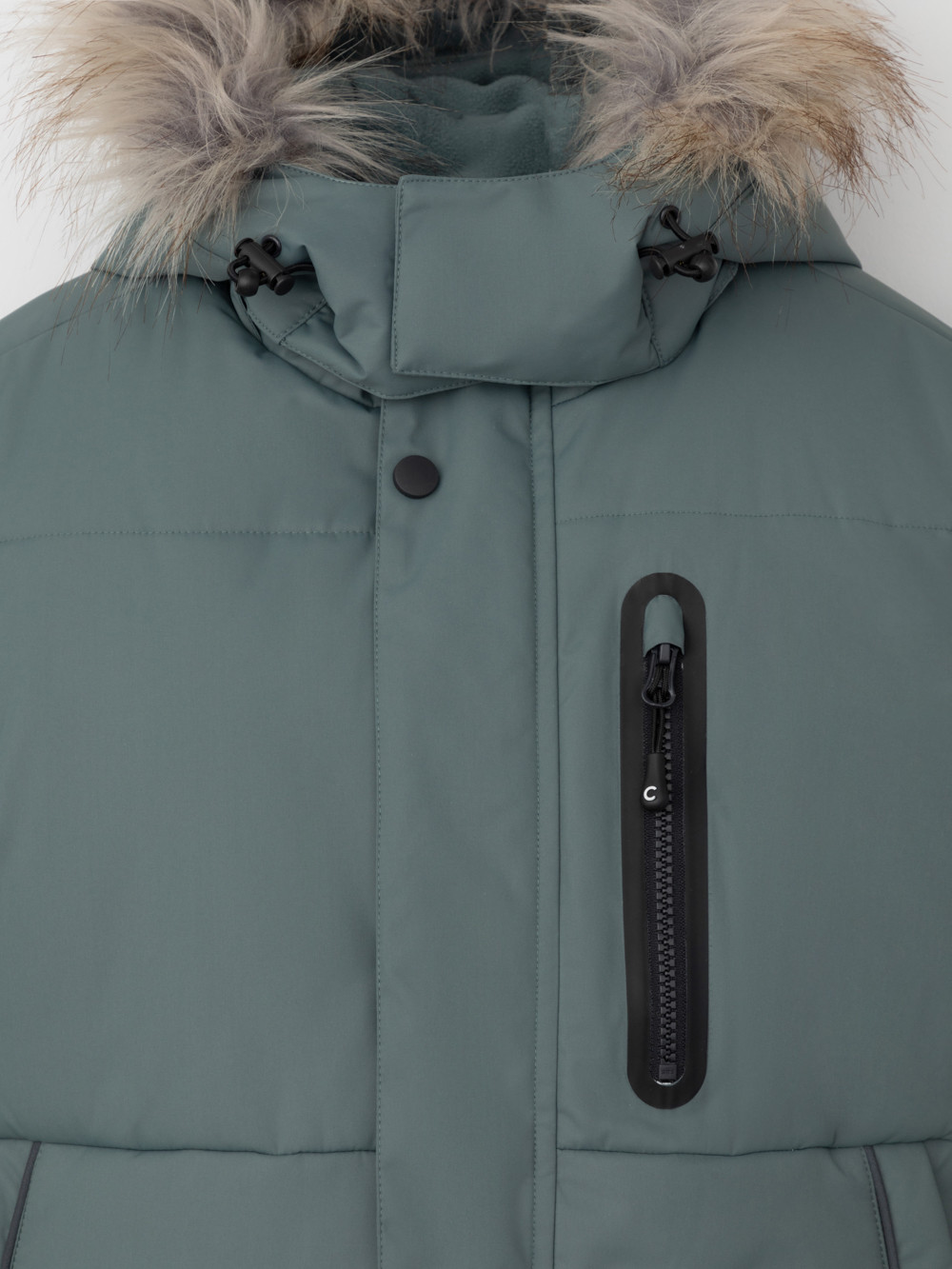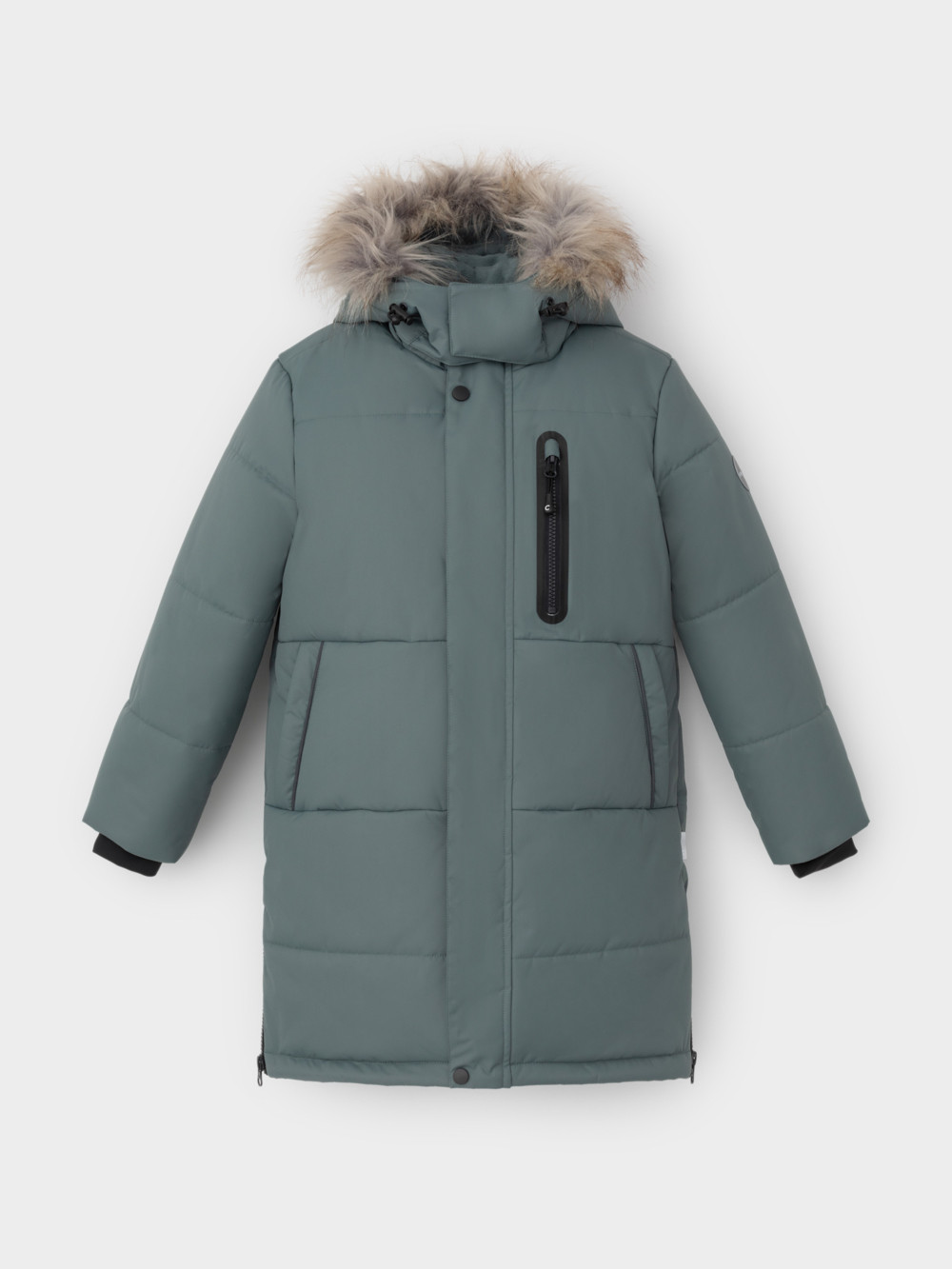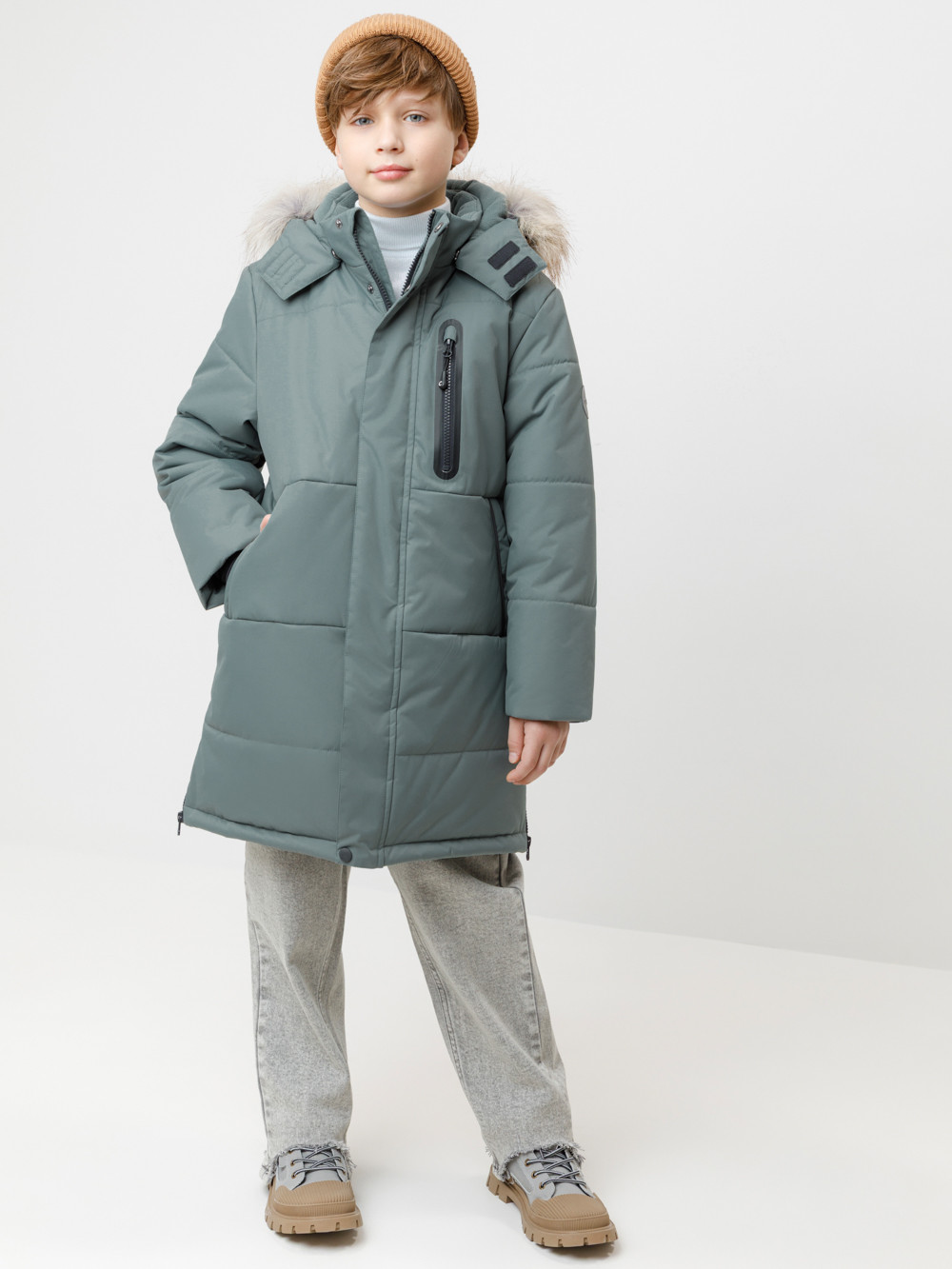 Зимнее пальто для мальчика с утеплителем  SEE®: 300 г/м2. Выполнено из мембранной ткани с дополнительной тефлоновой обработкой, которая предохраняет изделие от загрязнений и отталкивает влагу. Подклад выполнен из 100% полиэстера Tricot. Пальто застёгивается на молнию и внешнюю планку с кнопками. Съёмный капюшон имеет эластичную утяжку со стопперами и отстёгивающийся мех на молнии, регулируется по глубине с помощью липучки. На рукавах внутренние эластичные манжеты. По бокам два кармана на молниях и один карман на груди. Во всех изделиях верхнего ассортимента для безопасности ребёнка предусмотрены светоотражающие элементы.