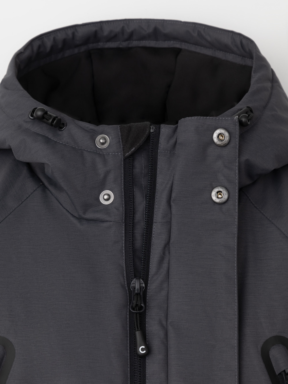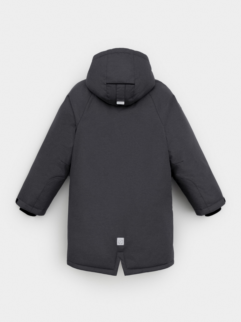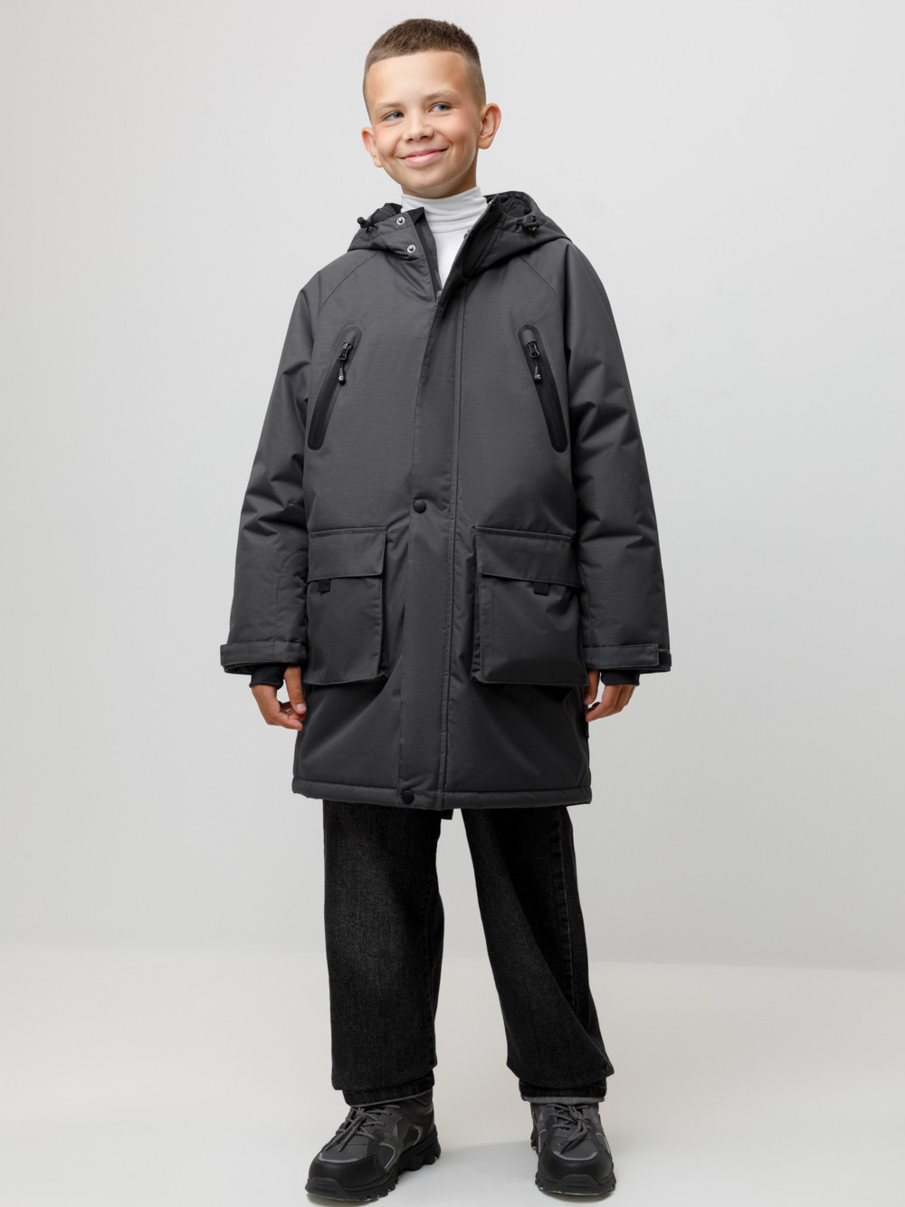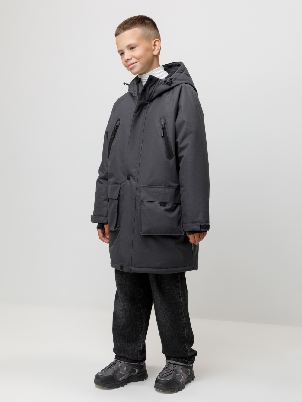 Зимняя парка для мальчика с утеплителем  Fellex®: 250 г/м2. Выполнена из мембранной ткани с дополнительной тефлоновой обработкой, которая предохраняет изделие от загрязнений и отталкивает влагу. Подклад выполнен из 100% полиэстера Tricot. Парка застёгивается на молнию и внешнюю планку с кнопками, предусмотрена защита подбородка. Вшитый капюшон затягивается на эластичную утяжку со стопперами и на шнур. На рукавах внутренние эластичные манжеты, ширина регулируется липучками. Два накладных кармана с клапанами по бокам и два кармана на груди. По талии эластичная утяжка со стопперами. Во всех изделиях верхнего ассортимента для безопасности ребёнка предусмотрены светоотражающие элементы.