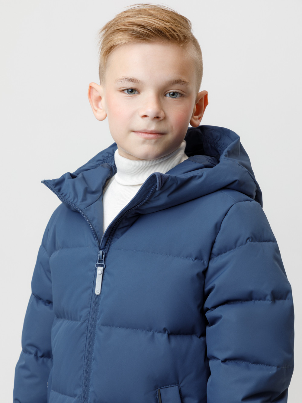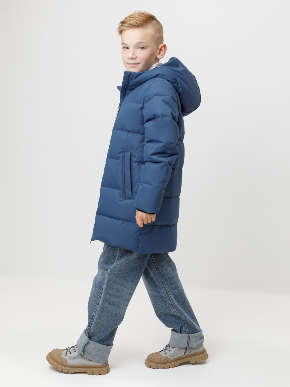 Зимнее пальто для мальчика с натуральным утеплителем из гусиного пуха (70%) и пера (30%). Выполнено из мембранной ткани с дополнительной тефлоновой обработкой, которая предохраняет изделие от загрязнений и отталкивает влагу. Подклад выполнен из 100% полиэстера. Пальто застёгивается на молнию, предусмотрена защита подбородка. Несъёмный капюшон имеет эластичные утяжки. По бокам два кармана на молнии, так же имеется внутренний карман. В рукавах мягкие внутренние манжеты. Во всех изделиях верхнего ассортимента для безопасности ребёнка предусмотрены светоотражающие элементы.