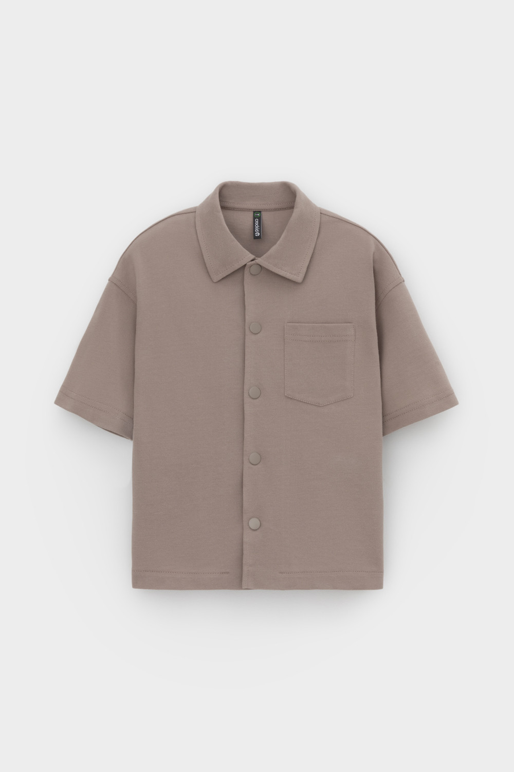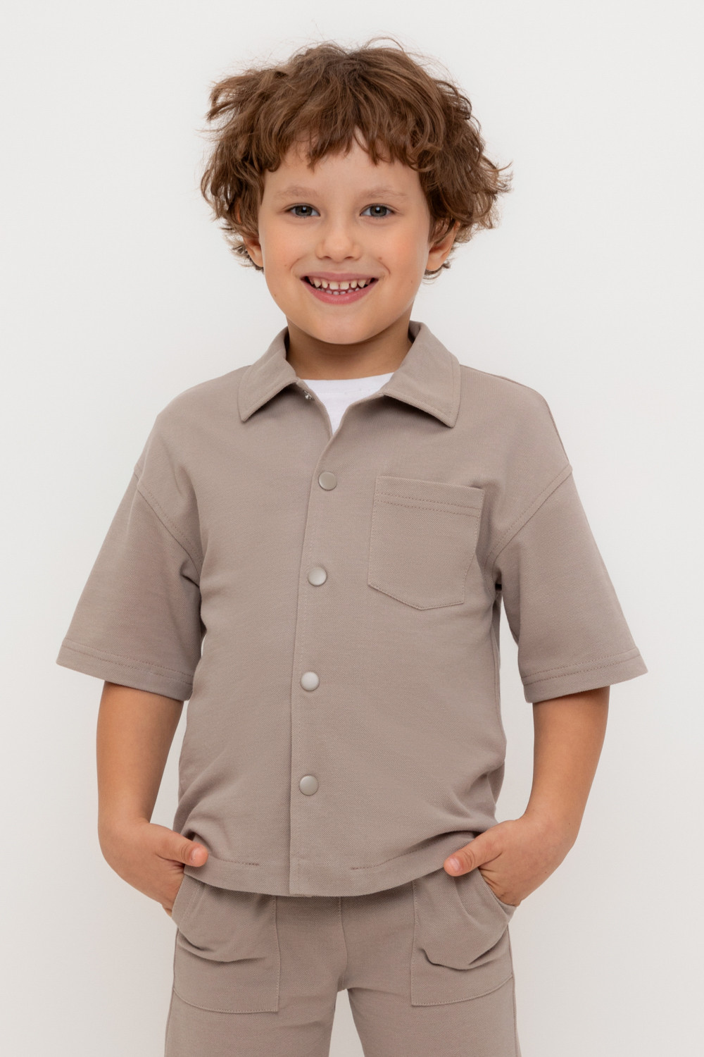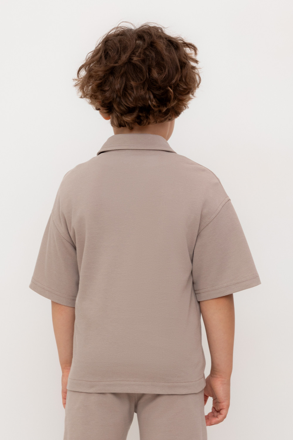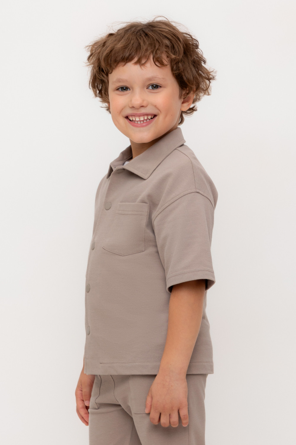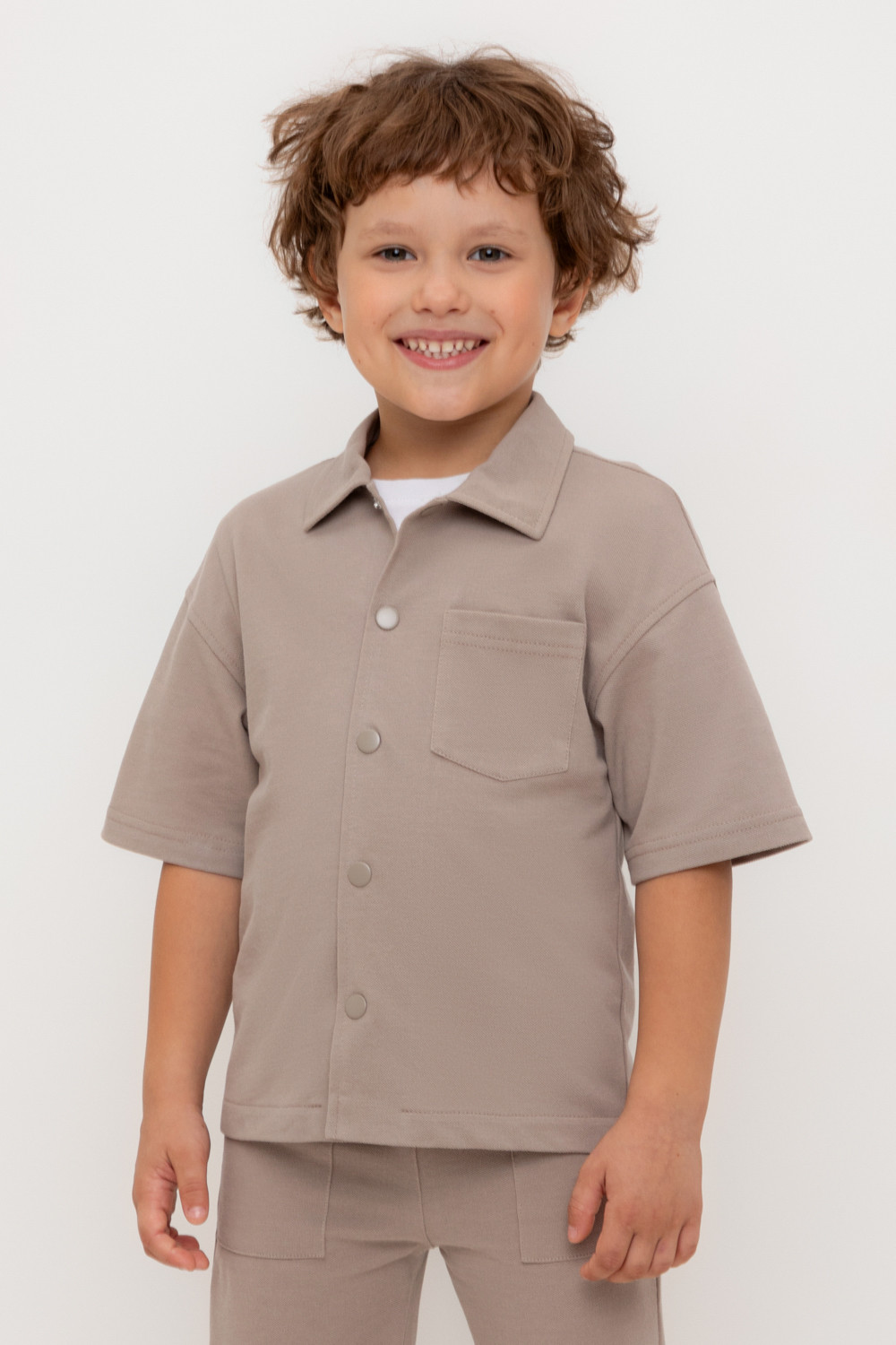 Рубашка для мальчика из мягкого высококачественного трикотажа пике. Застёгивается на кнопки. Модель со спущенным плечом.