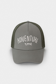 Кепка для мальчика из текстиля и сетки. Спереди украшена оригинальным принтом.  Регулируется по ширине головы и фиксируется на затылке с помощью пластиковой застёжки.