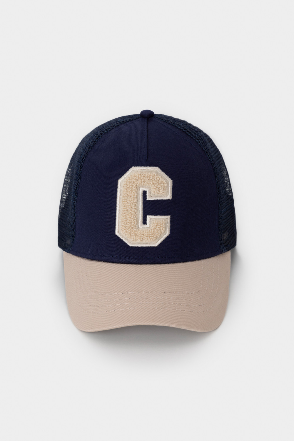 Кепка для мальчика из текстиля и сетки. Спереди украшена оригинальной нашивкой.  Регулируется по ширине головы и фиксируется на затылке с помощью пластиковой застёжки.