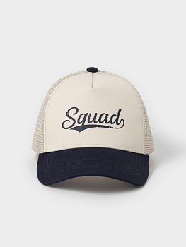 Кепка для мальчика из текстиля и сетки. Спереди украшена оригинальным принтом. Регулируется по ширине головы и фиксируется на затылке с помощью пластиковой застёжки.