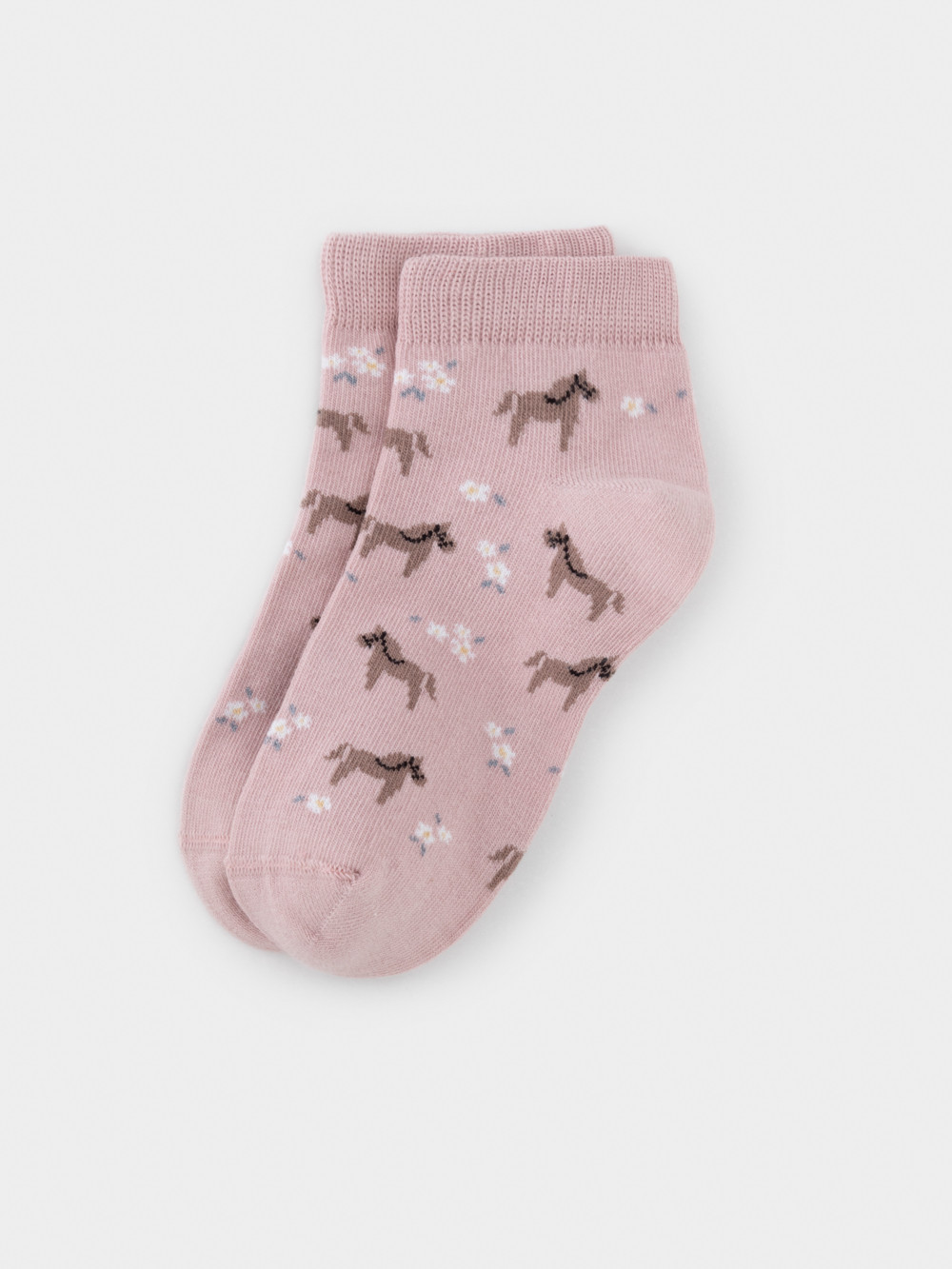 Носки короткие детские с формованной пяткой и эластичной резинкой по краю. Украшены рисунком. Изделие сохраняет форму и стойкий цвет после многочисленных стирок.