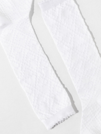 Гольфы для девочки с формованной пяткой и эластичной резинкой по краю. Связаны ажурным узором.