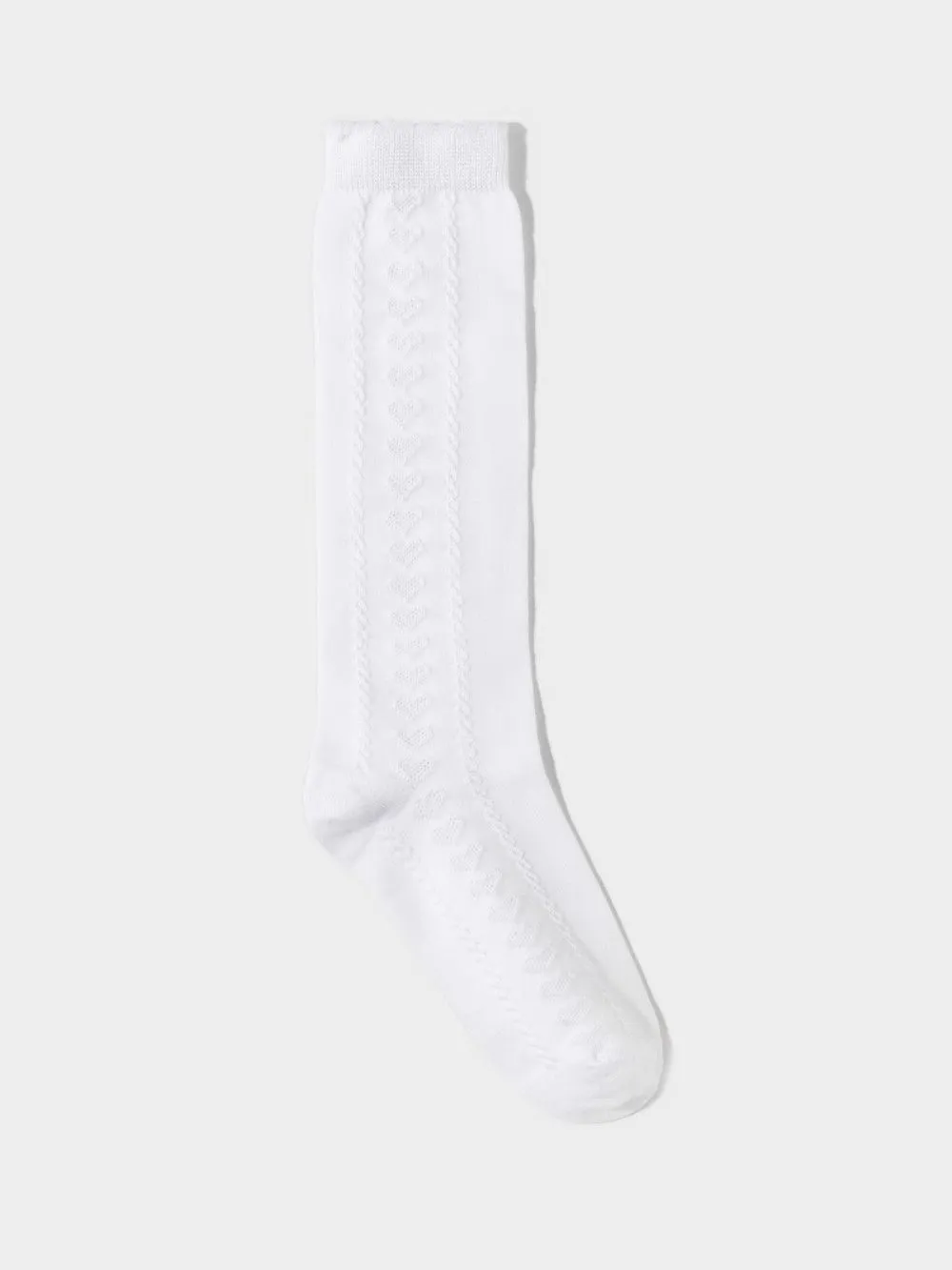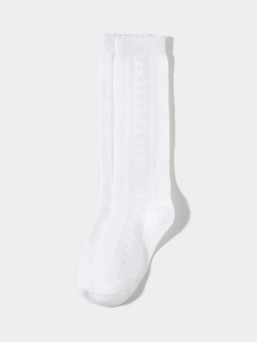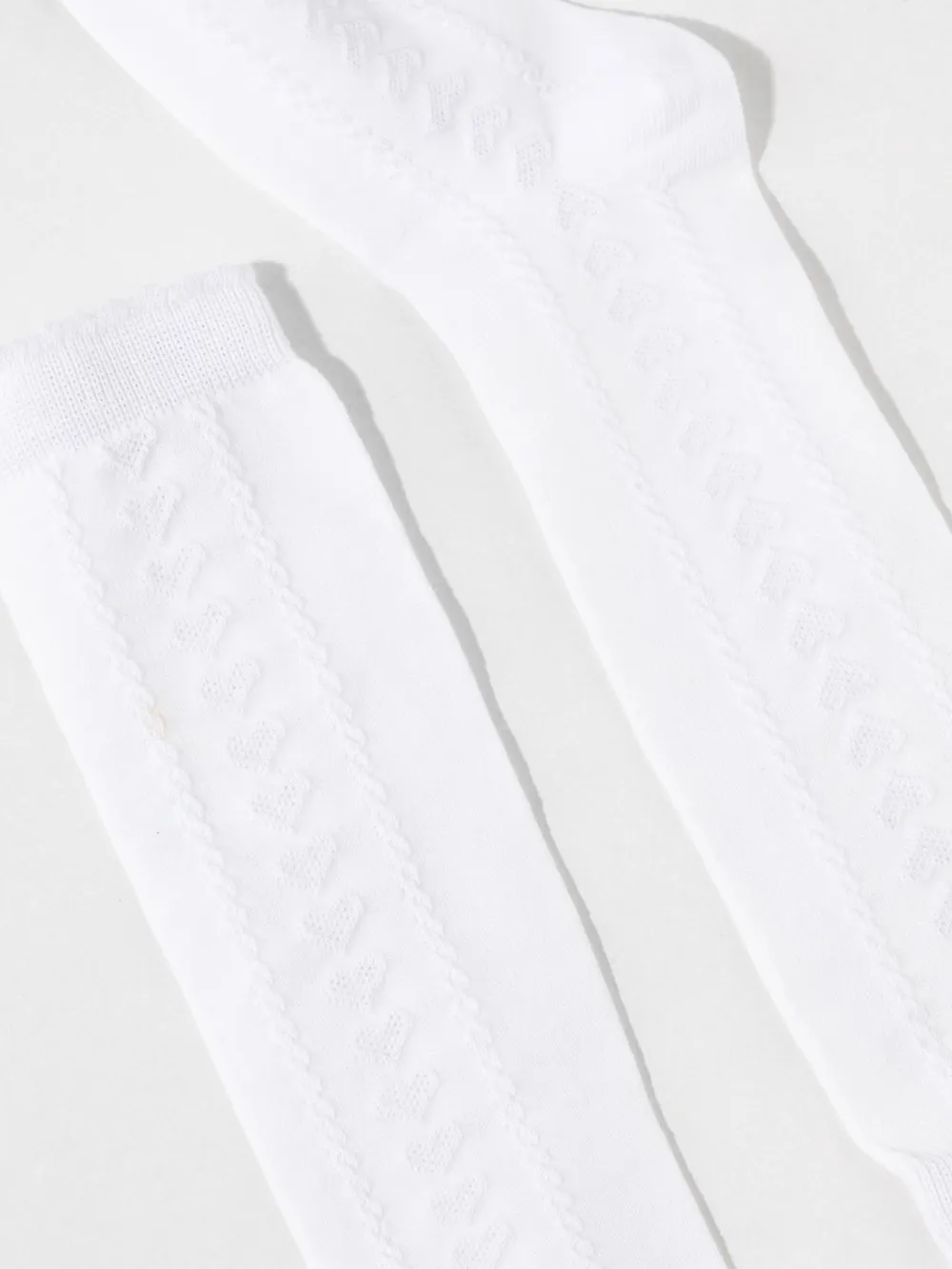 Гольфы для девочки с формованной пяткой и эластичной резинкой по краю. Связаны ажурным узором.