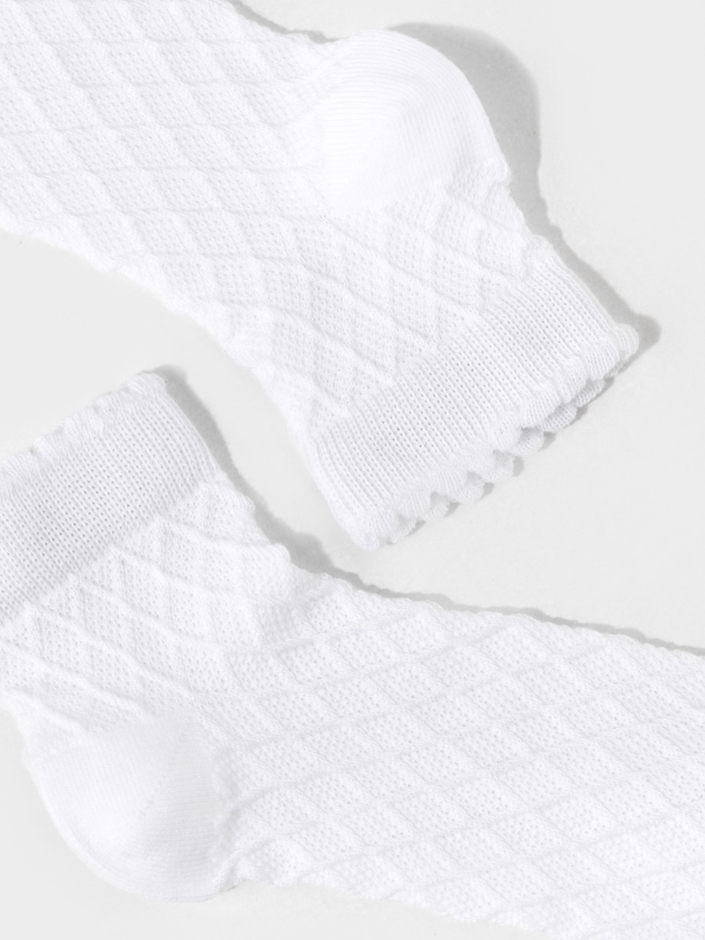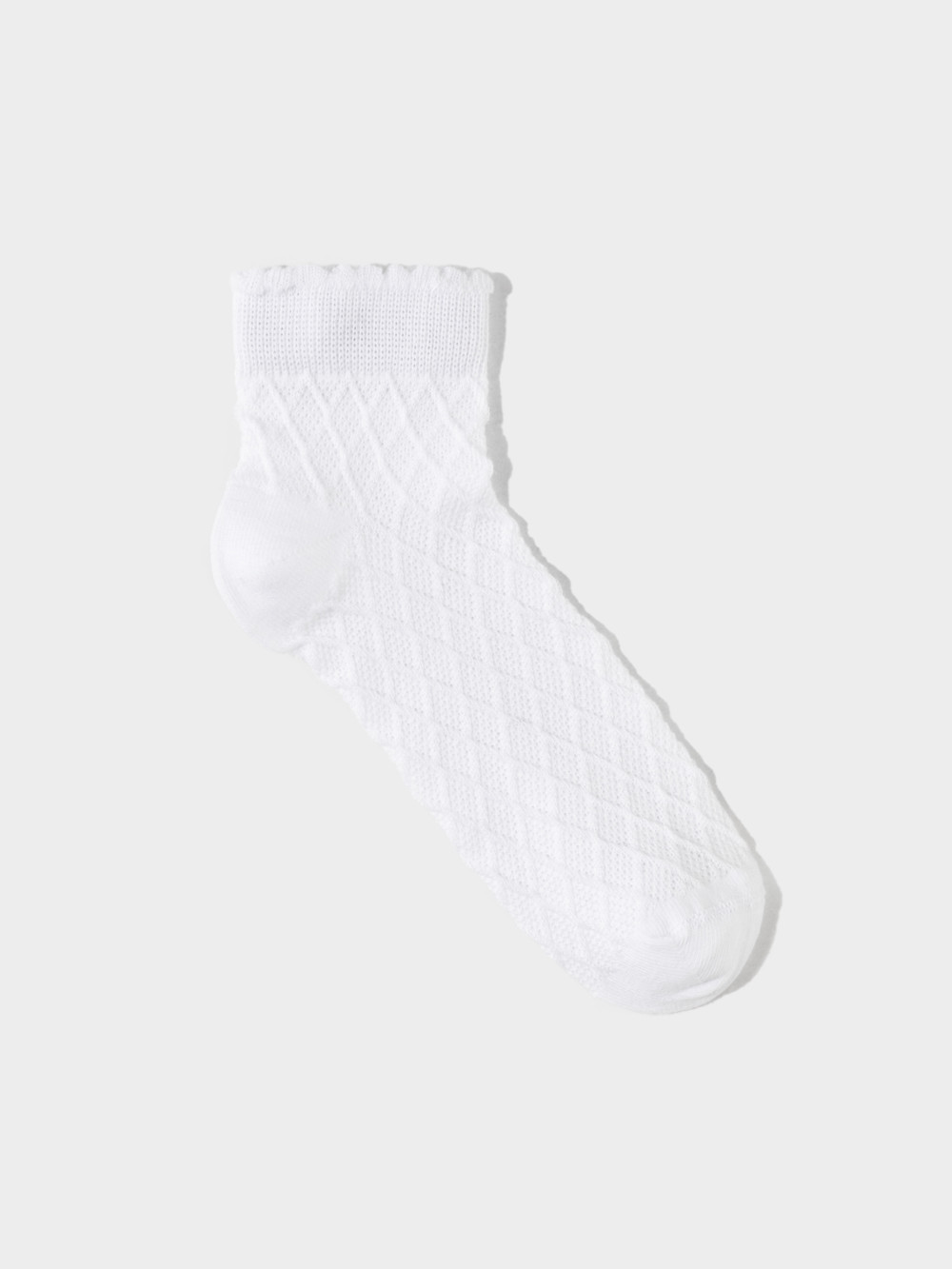 Носки короткие для девочки с формованной пяткой и эластичной резинкой по краю. Связаны ажурным геометрическим узором.