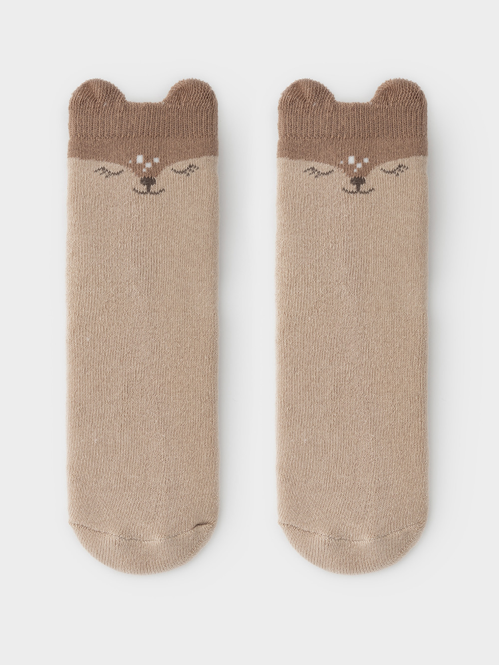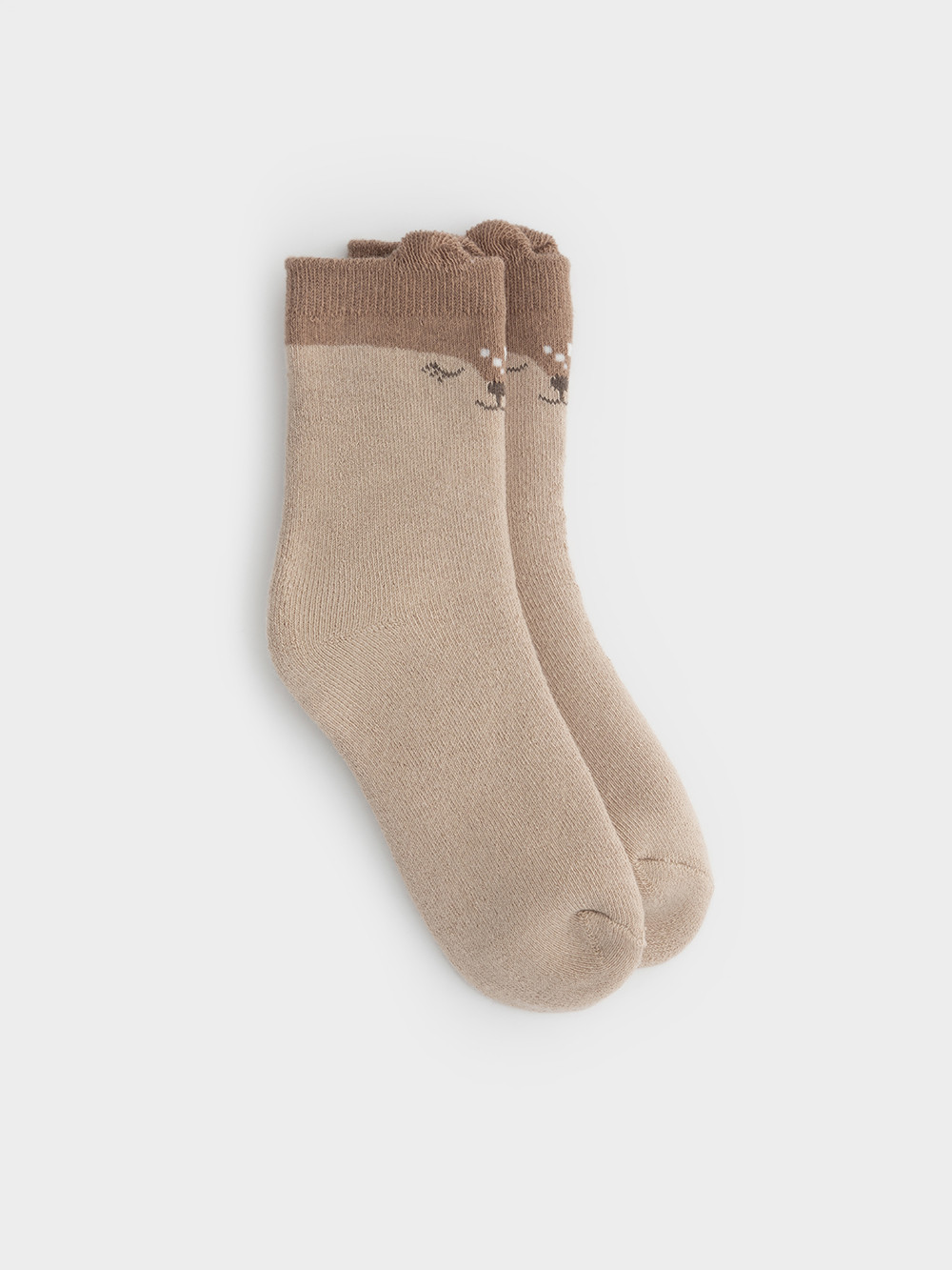 Носки махровые с формованной пяткой и эластичной резинкой по краю. Украшены рисунком и объёмными элементами. Изделие сохраняет форму и стойкий цвет после многочисленных стирок.